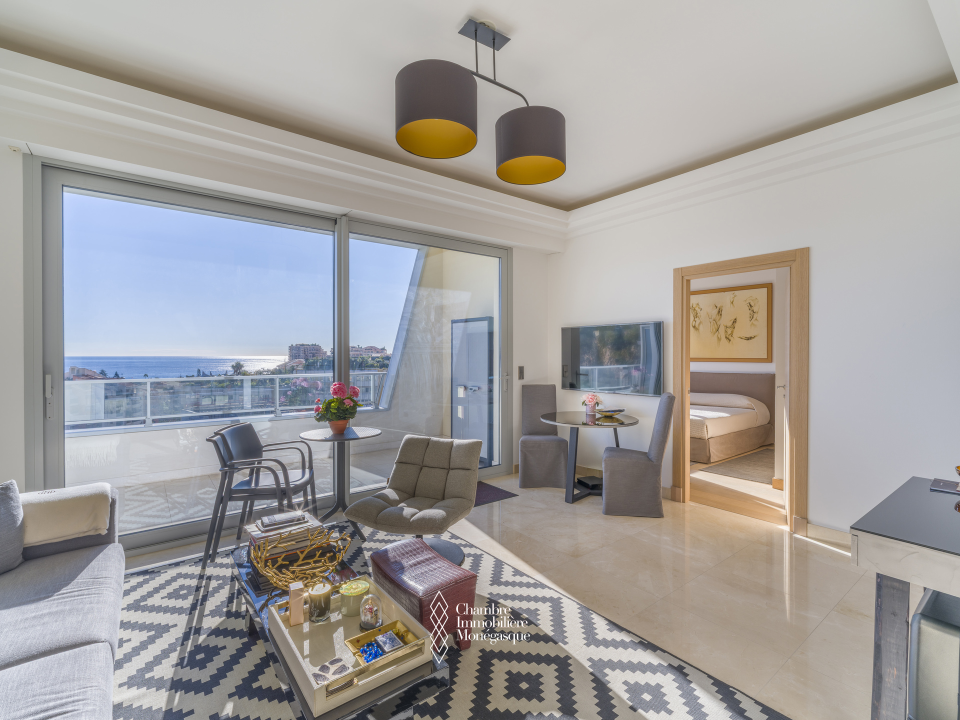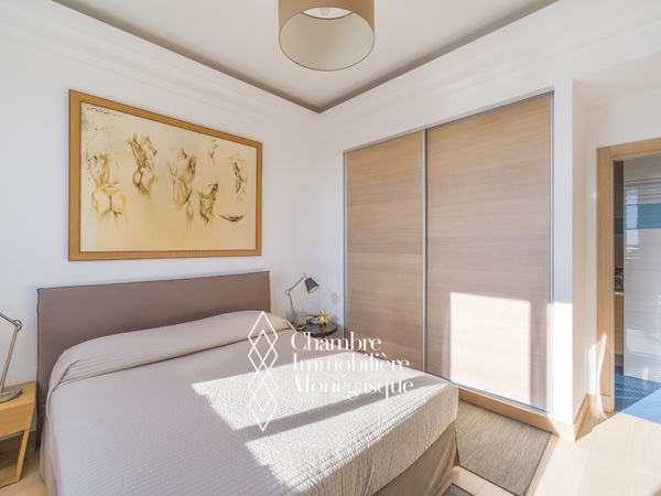 Pleasant one bedroom appartement in a recent building, ideal for investment. This apartment is very bright and has a clear view of the port of Fontvieille admirable from the balcony. It's composed open kitchen on the nice living room, a guest toilet and an ensuite bedroom.