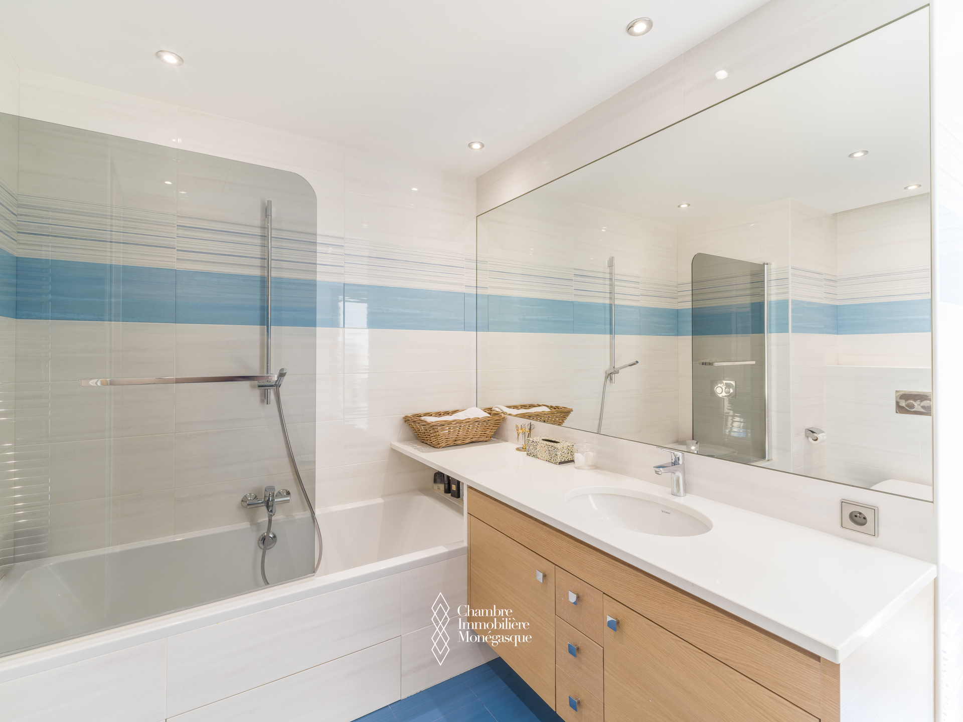 In Monaco-Ville, a few steps from the Place de la Mairie, discover this superb 3-room apartment completely renovated with elegance. This bright apartment offers a living room with open kitchen, two bedrooms, two shower rooms, and an office. A cellar on the same landing adds a practical touch to this rare property subject to law n°1.235. A privileged living environment in the heart of the Principality.