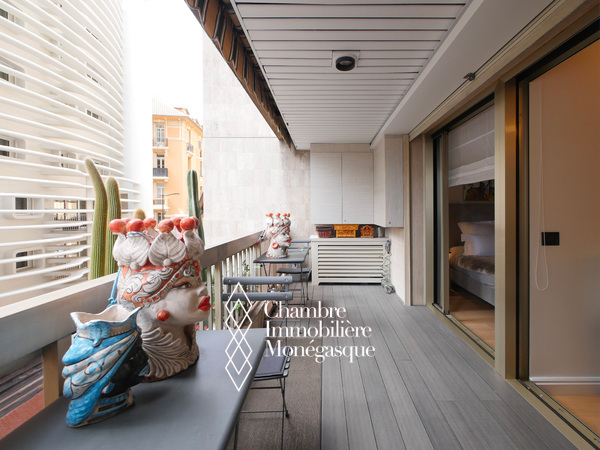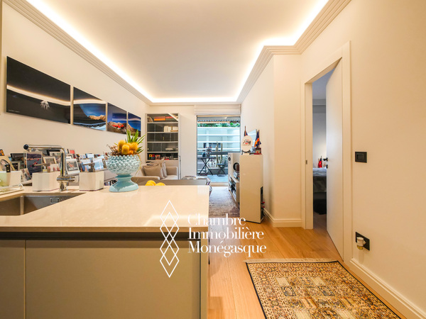 Ce très beau 2 pièces  clé en mains est le 'pied-à-terre' idéal en Principauté de Monaco. Récemment rénové dans un style contemporain, il bénéficie d'espace parfaitement optimisés. Il se compose d'une entrée, d'un séjour avec cuisine ouverte entièrement équipée, une chambre avec rangements et d'une salle de douche avec toilette. L'ensemble des pièces principales s'ouvrent sur une terrasse exposée Sud-Ouest.