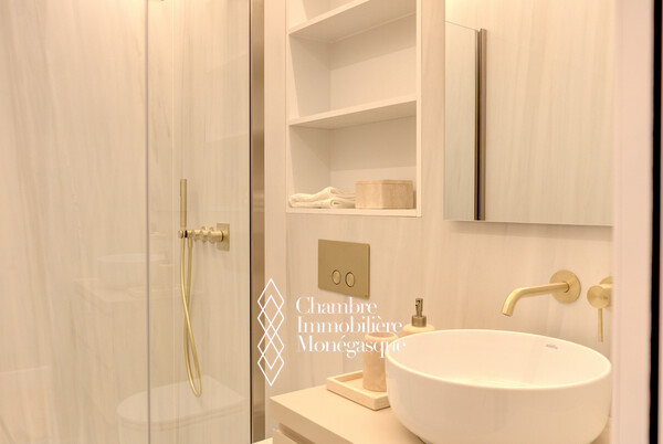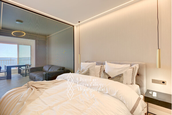 Situé en plein coeur de Fontvieille, ce studio luxueux a fait l'objet d'une rénovation soignée. Les matériaux choisis sont de très bonne qualité. Coin nuit séparée. Vue imprenable sur le Port et le Rocher.. Esprit d'une chambre d'hôtel d'exception
