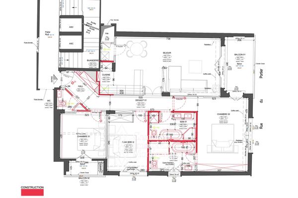Il se compose comme suit : hall d'entrée, couloir, salon salle à manger avec cuisine américaine équipée, 3 chambres, 2 salles de bains, un toilette invités, dressing et 2 loggias.