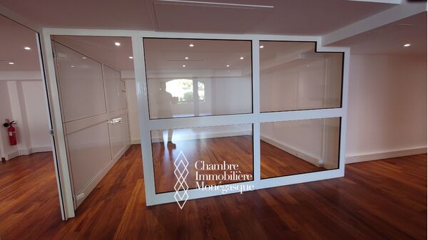 Ce bureau est situé dans le port de Fontvieille, avec vue sur les jardins, ce qui garantit un emplacement calme. L'espace dispose d'une grande fenêtre qui éclaire naturellement le bureau.