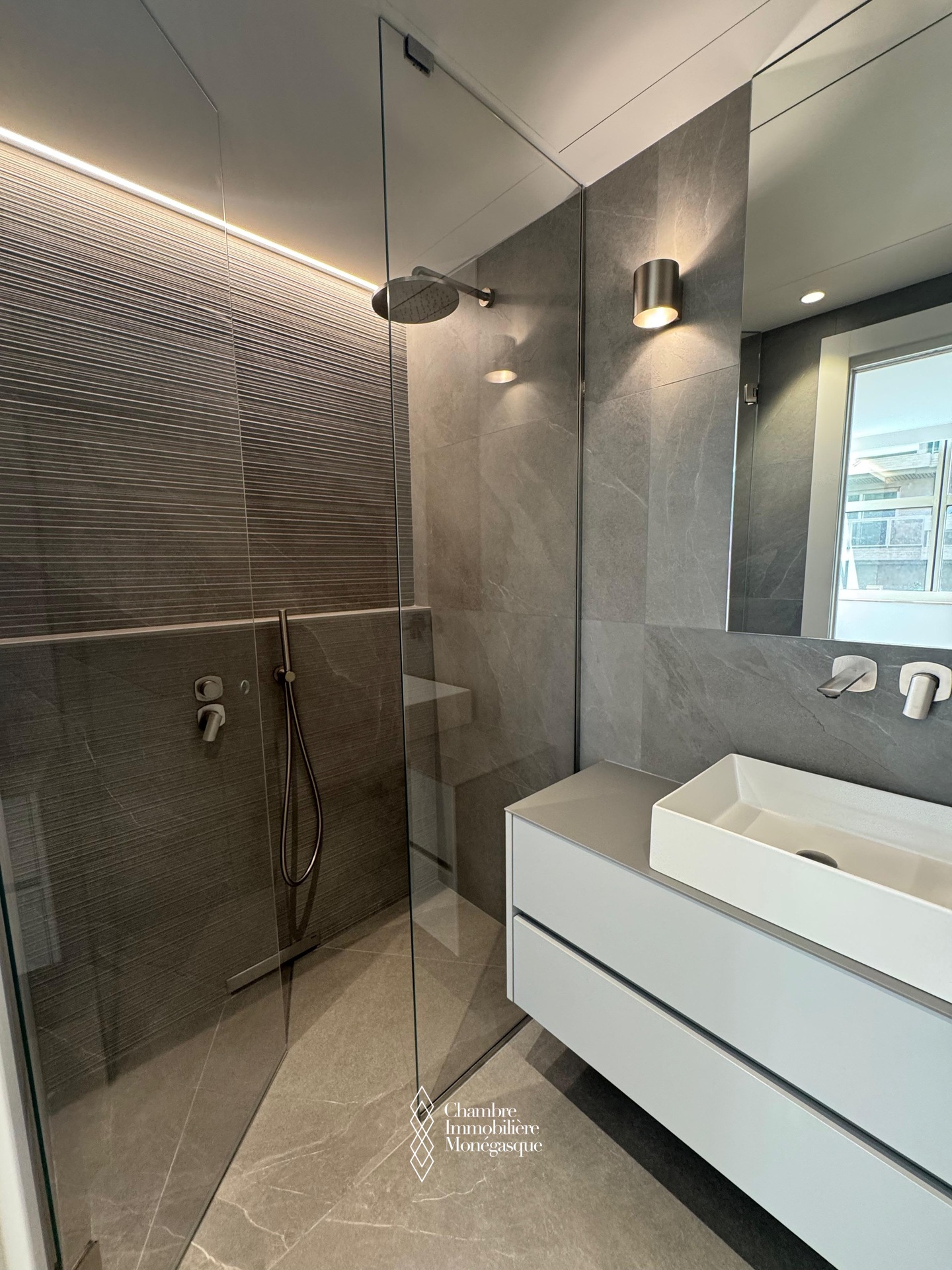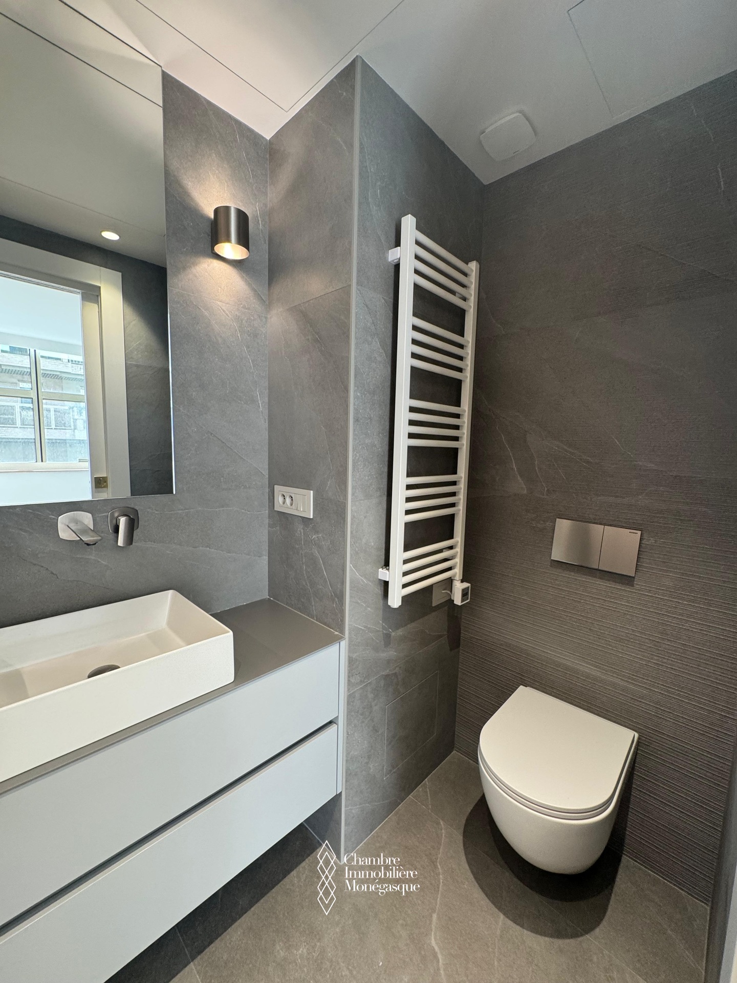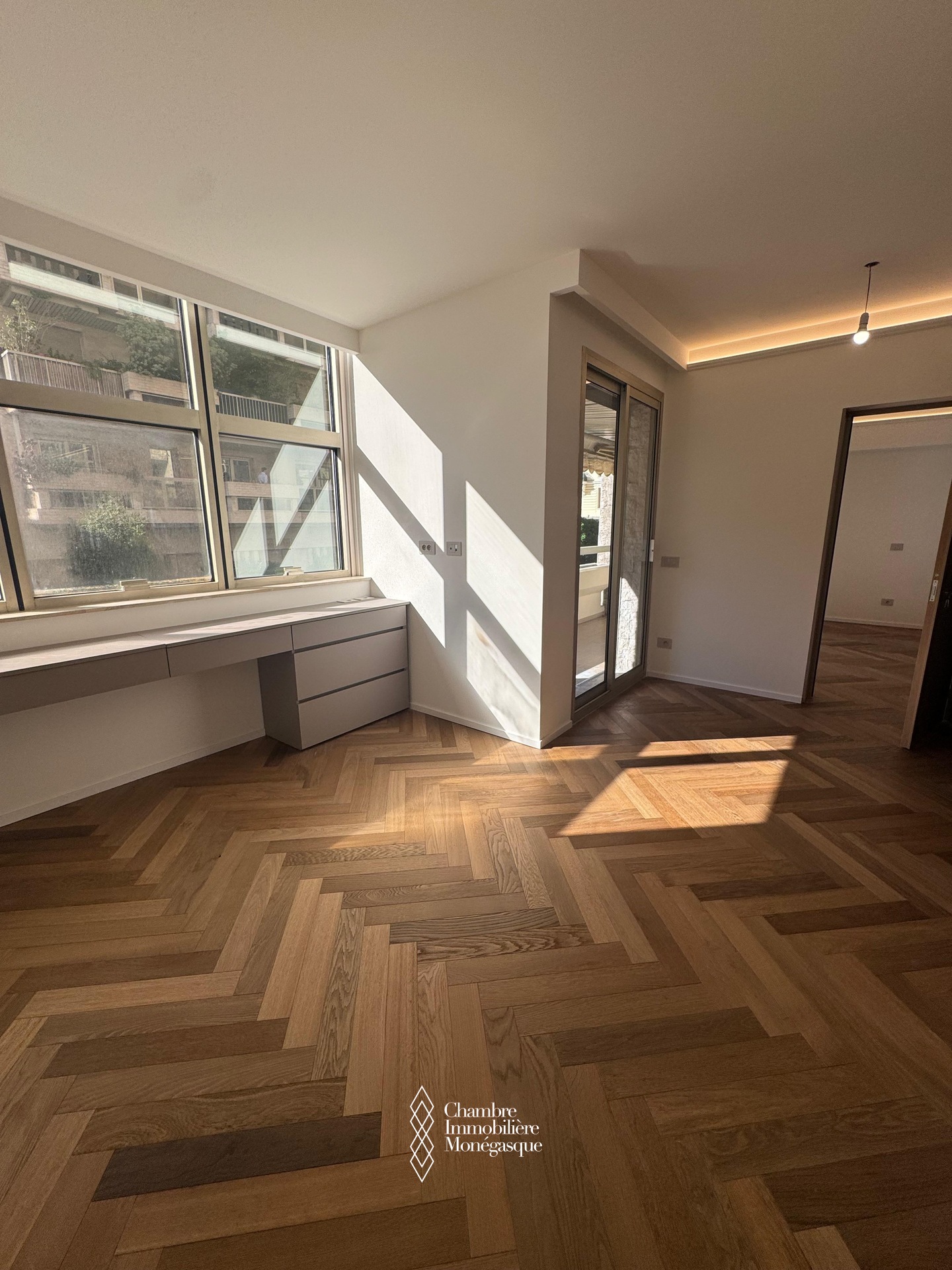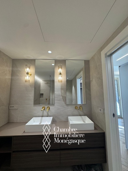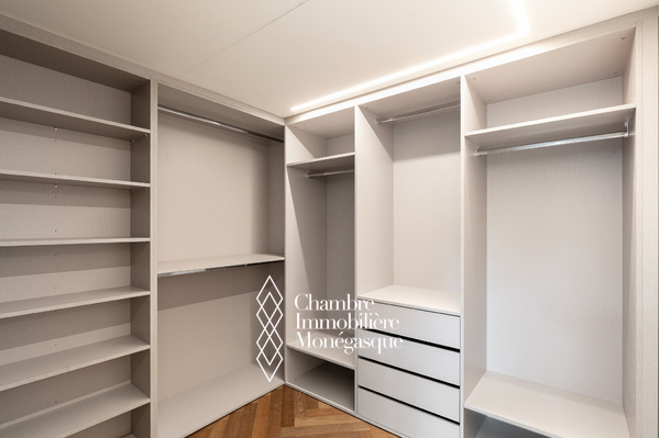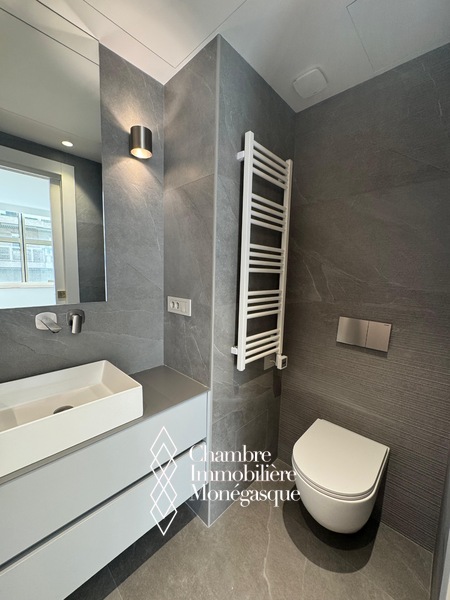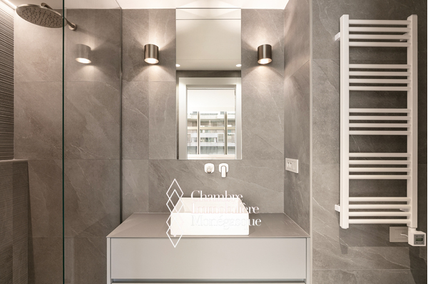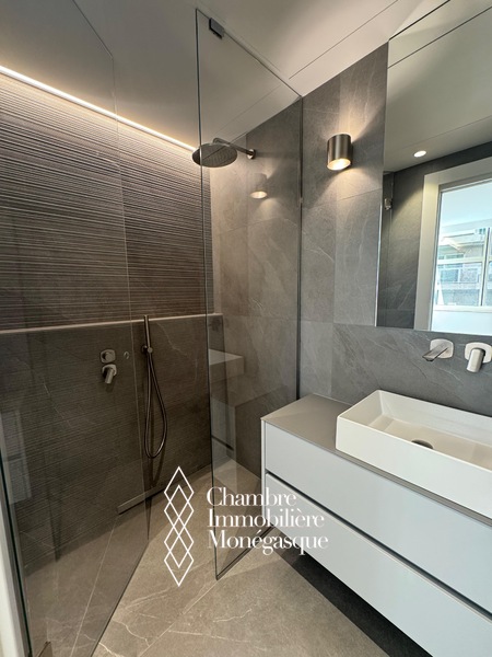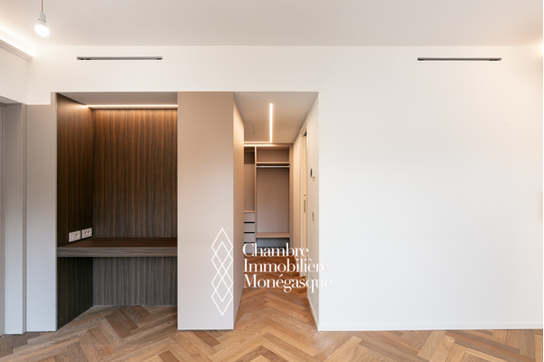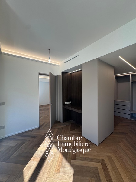 Composition : un hall d’entrée accueillant, un spacieux séjour parfait pour recevoir ou se détendre, une cuisine indépendante moderne, entièrement équipée, avec buanderie attenante, deux chambres en suite, chacune avec rangements intégrés et dressing, un toilette invités, un agréable balcon avec vue dégagée sur la ville, idéal pour profiter de l’ambiance monégasque.