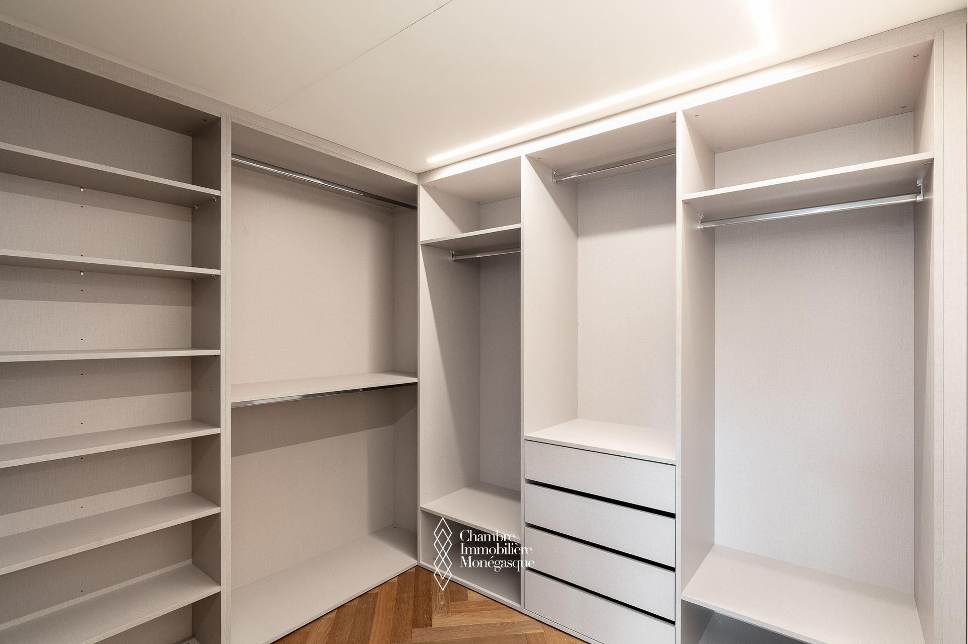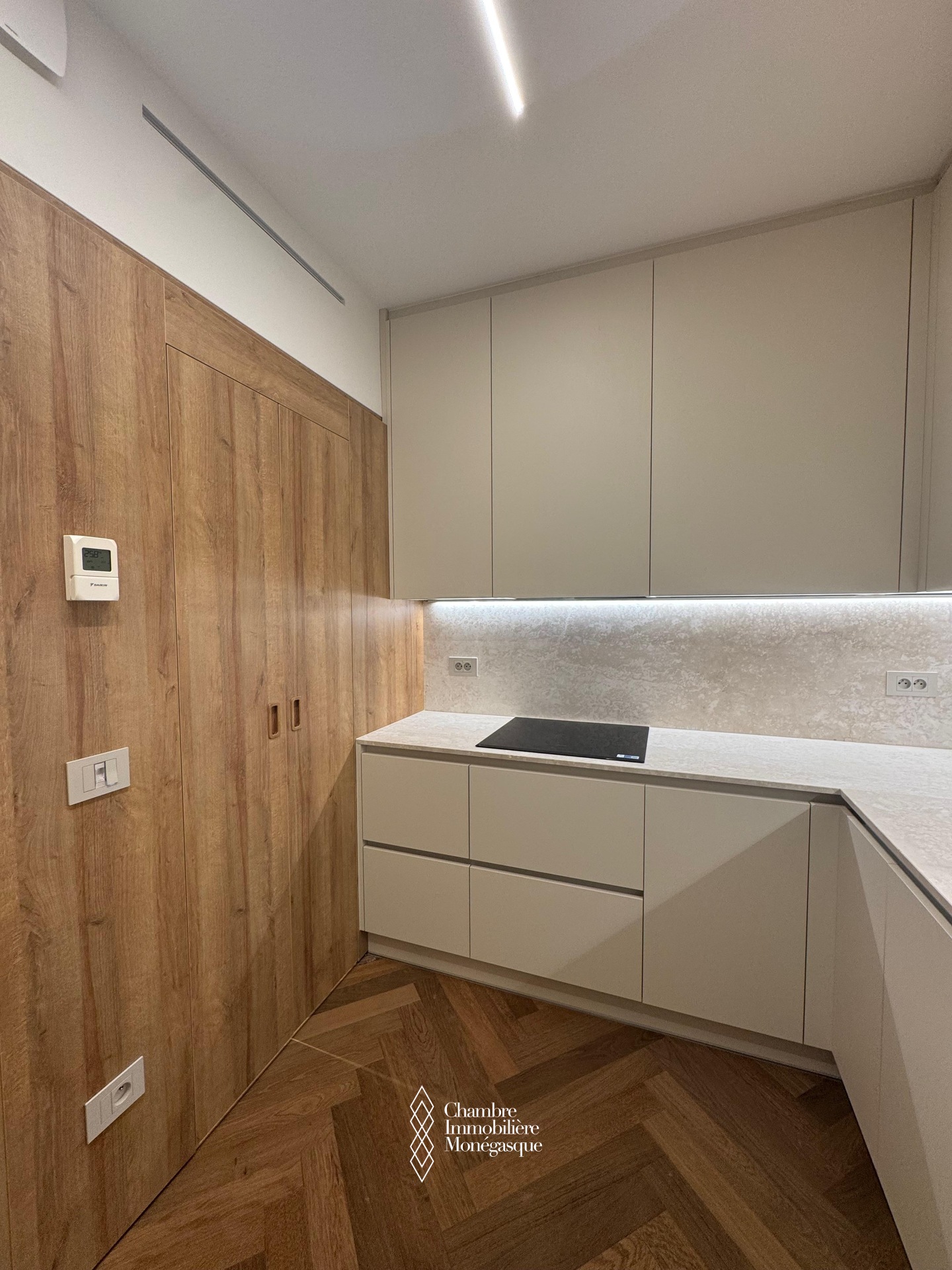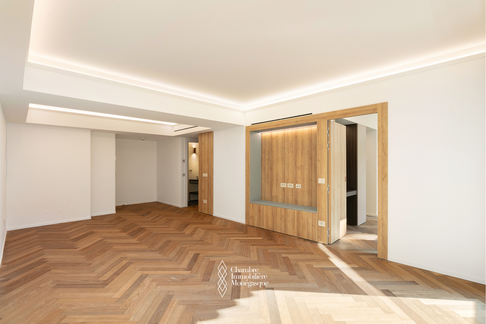 D’une surface totale de 113 m², cet appartement climatisé séduit dès l’entrée par ses volumes généreux, sa belle hauteur sous plafond, et ses finitions haut de gamme, telles qu’un élégant parquet en pointe de Hongrie et une lumière naturelle omniprésente qui sublime chaque espace.