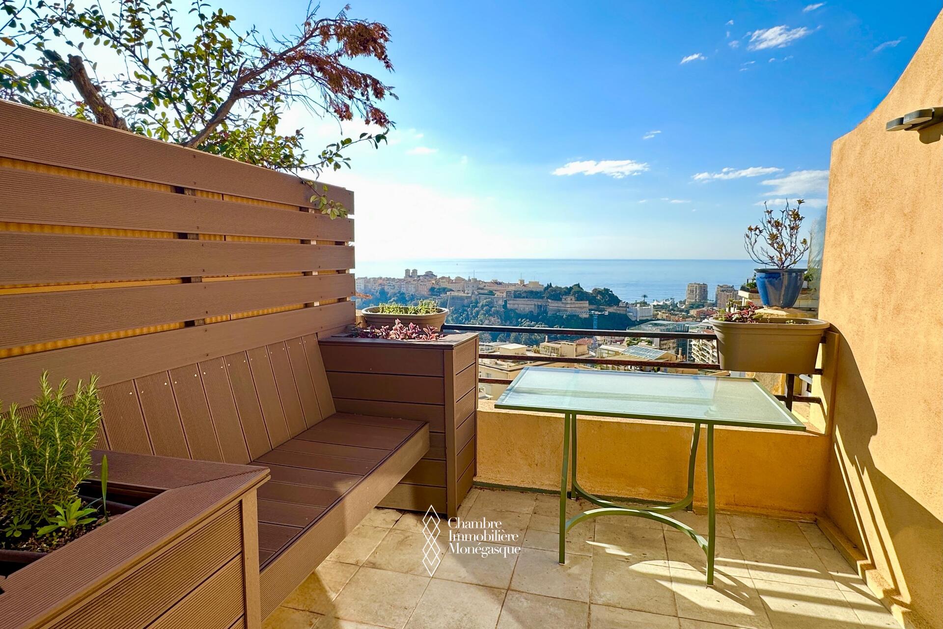 Au sein du quartier résidentiel du boulevard de Belgique dans un charmant immeuble bourgeois, ce beau penthouse avec roof terrasse bénéficie d'une vue sur la mer et le Rocher.