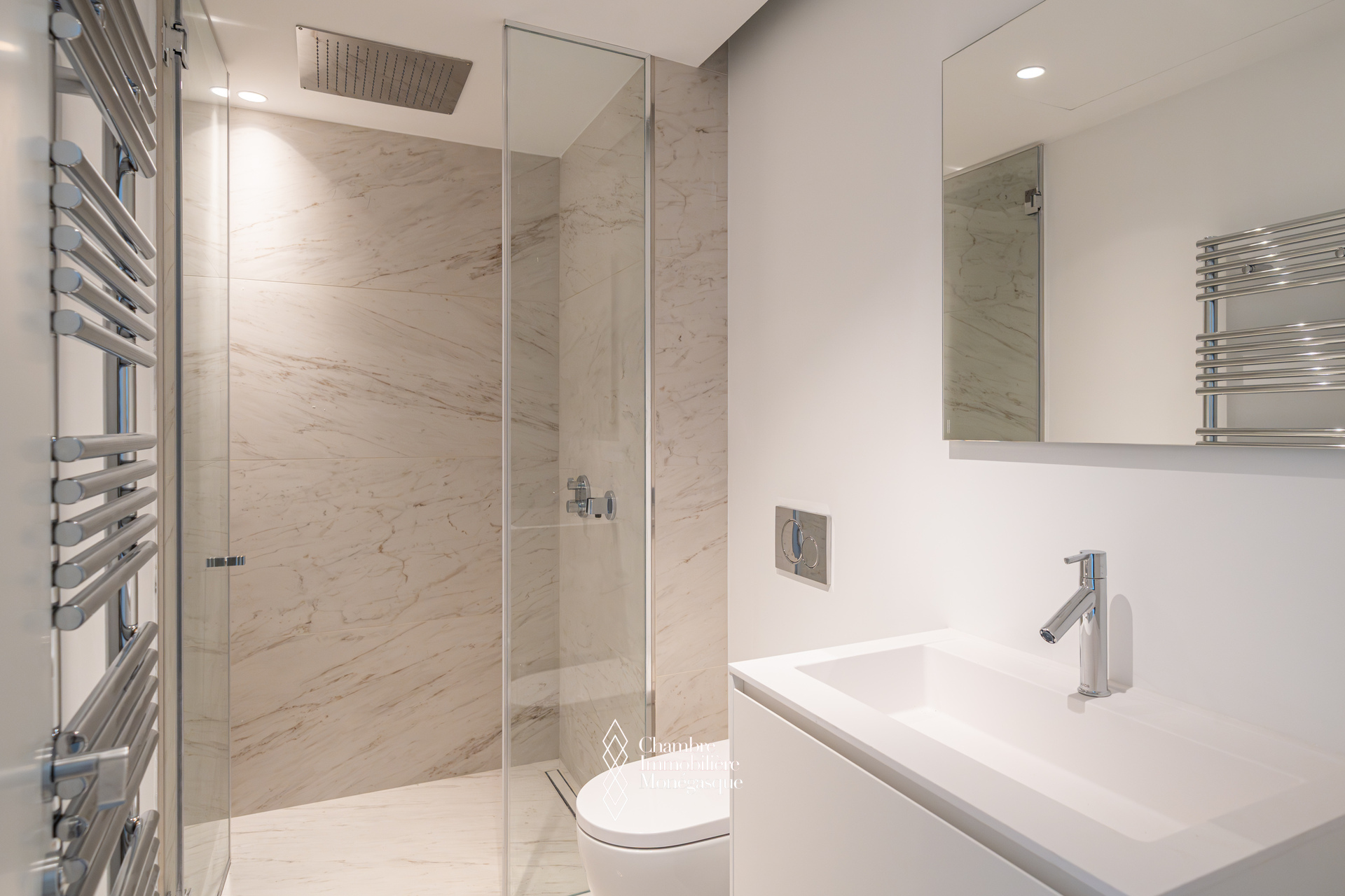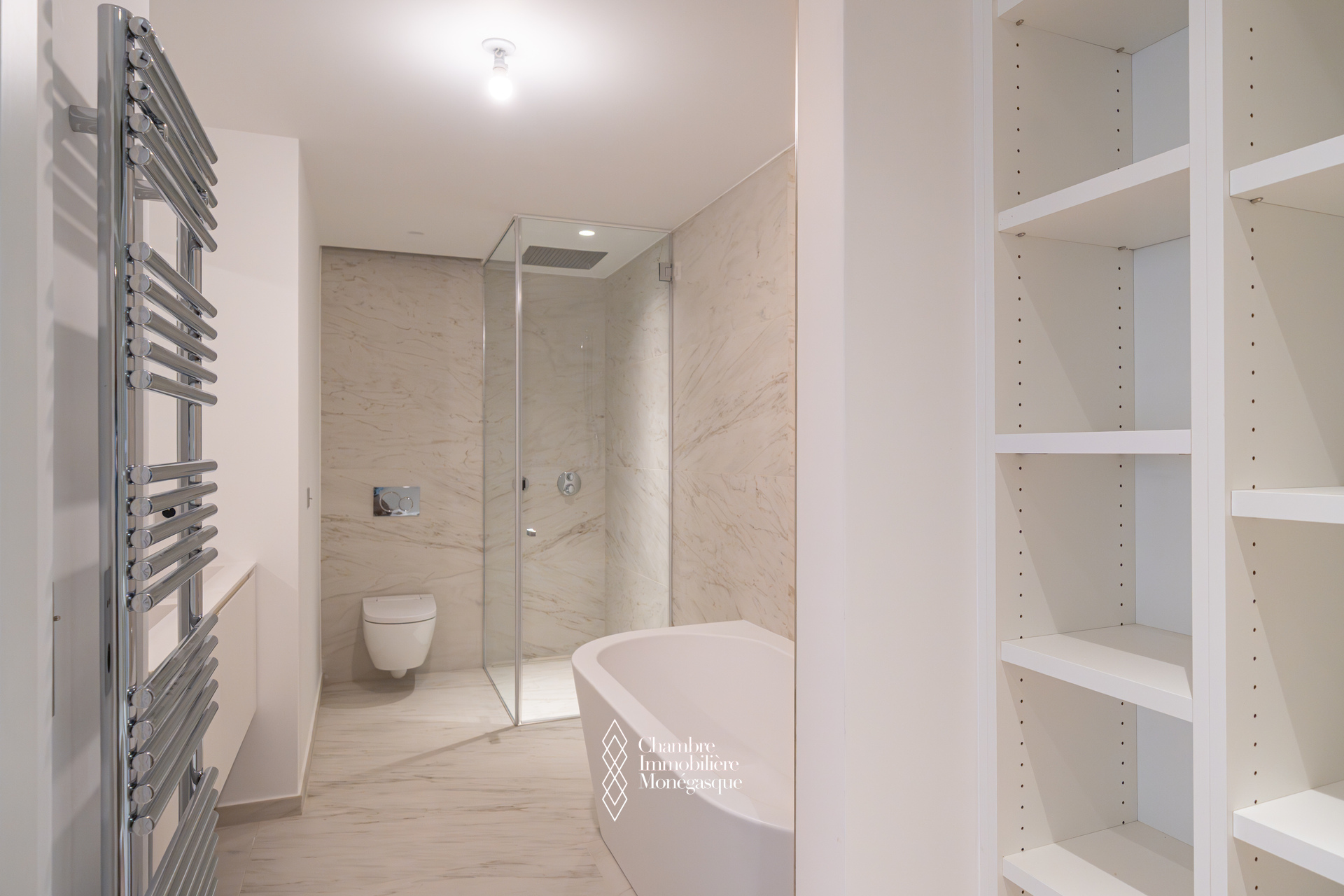 Situé au 2ème étage, ce trois pièces d'une surface habitable de 129.35 m² et de 41,26 m² de terrasse bénéficie de luxueuses finitions.