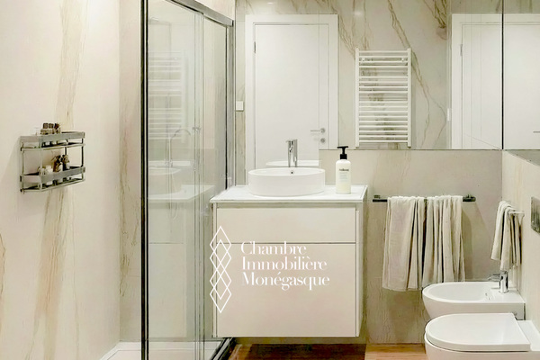 Situé dans une résidence de bon standing avec concierge, bénéficiant d'une position géographique idéale à seulement deux pas des plages du Larvotto, du prestigieux Carré d'or et son Casino, et de la place des Moulins par ascenseur.