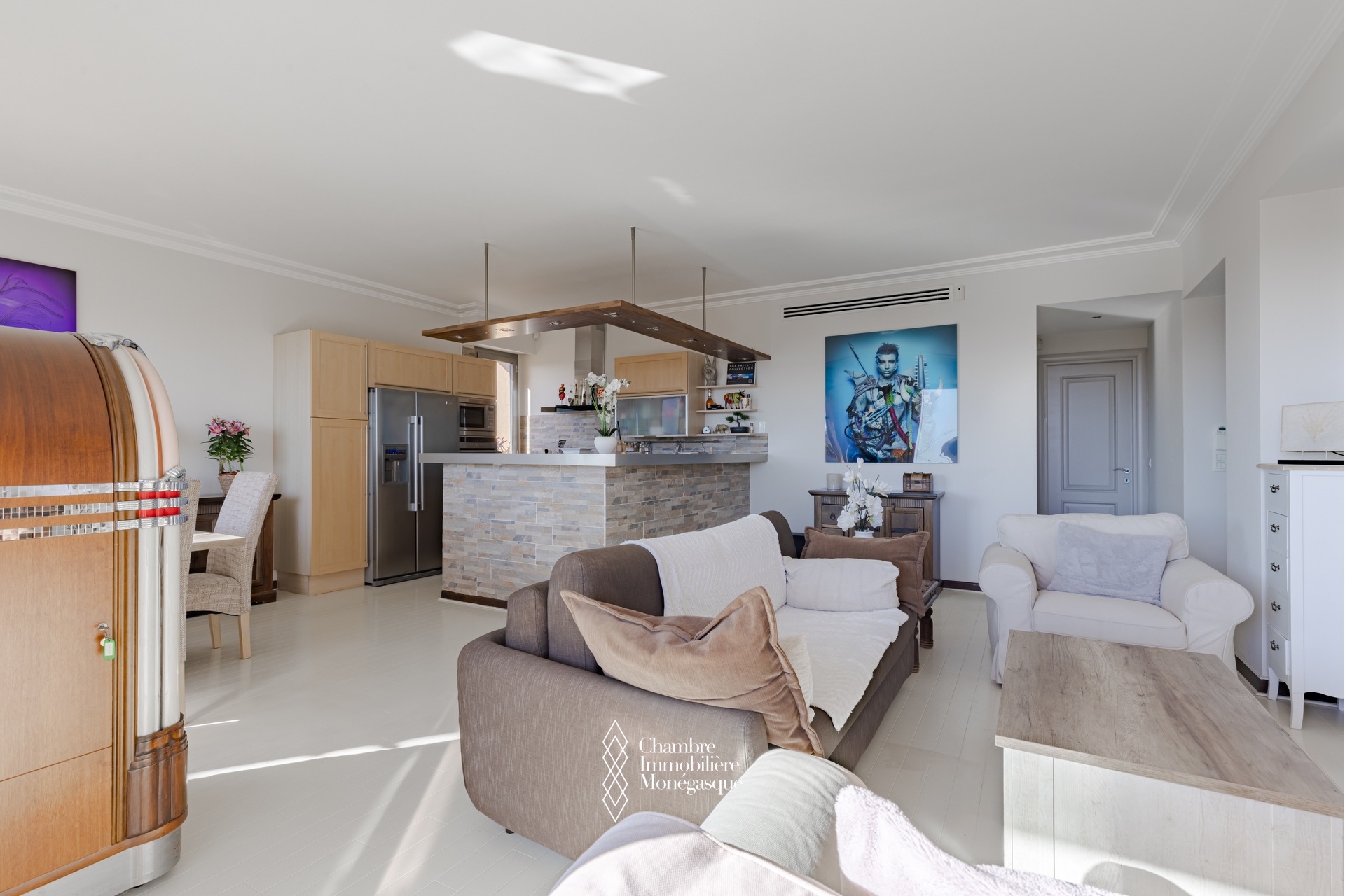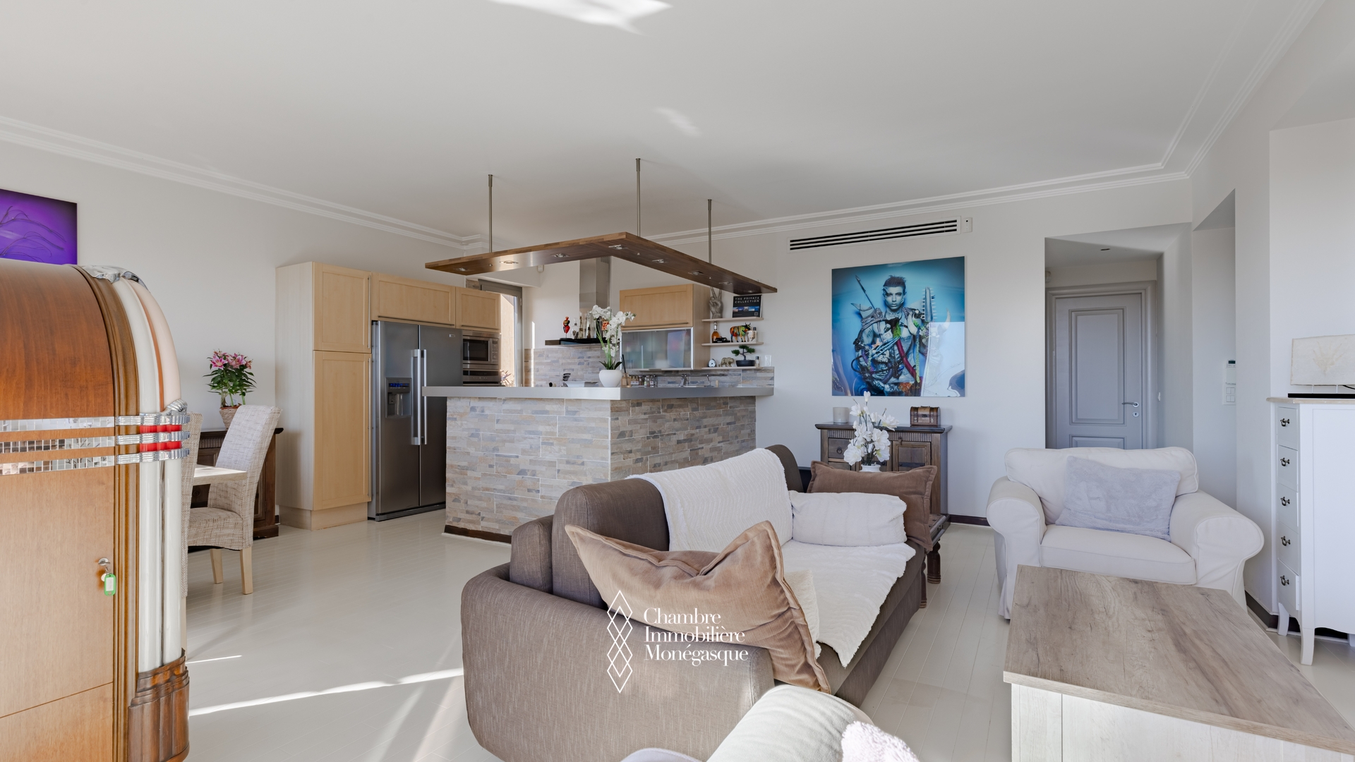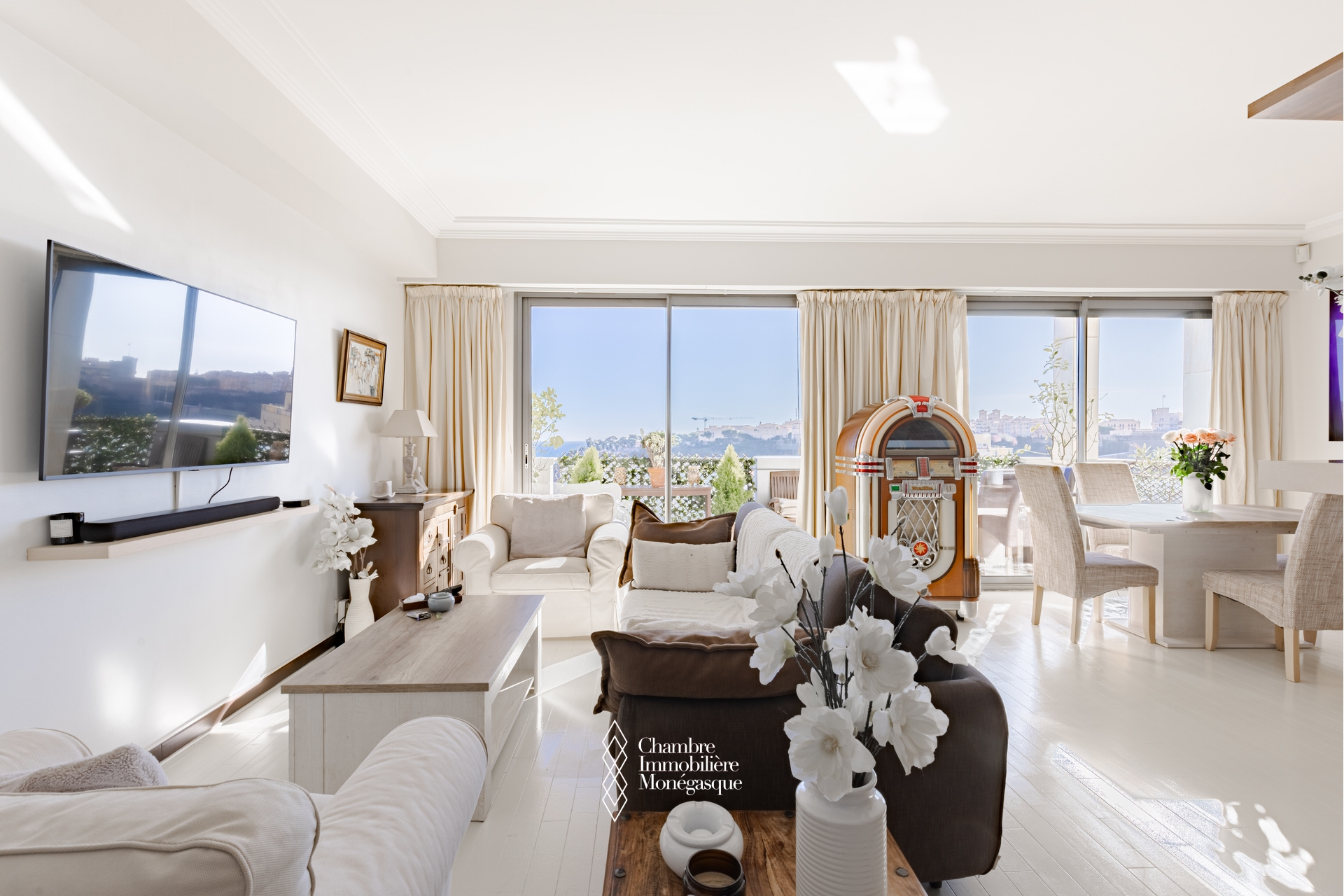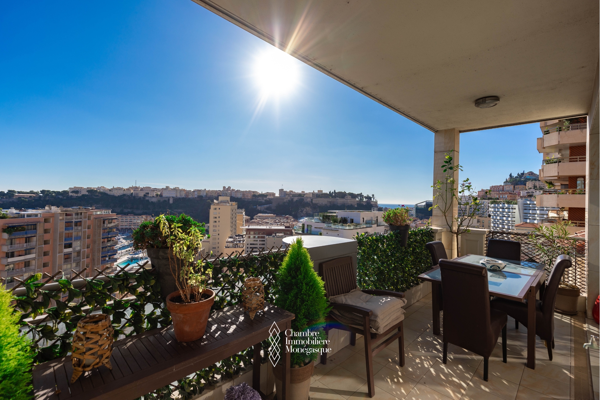 Il jouit d'une terrasse de 11 M2 avec une vue sur le Port Hercule et le Rocher.