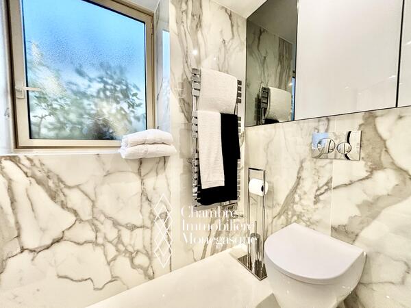 Idéalement situé dans le quartier prisé de Larousse–Saint-Roman, face à l’ascenseur public menant directement aux plages du Larvotto, ce 4 pièces unique a été entièrement rénové avec des prestations luxueuses et un raffinement sans égal.