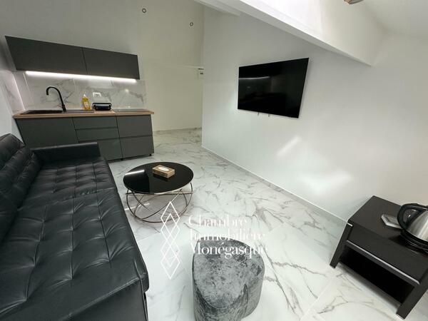 Idéal en tant que pied-à-terre libre de lois, ce studio de 45 m², entièrement rénové et baigné de lumière, est situé dans un élégant immeuble de style bourgeois. Il offre une entrée, une vaste pièce de vie avec cuisine ouverte sur le salon, un coin chambre, une salle de douche et un WC.