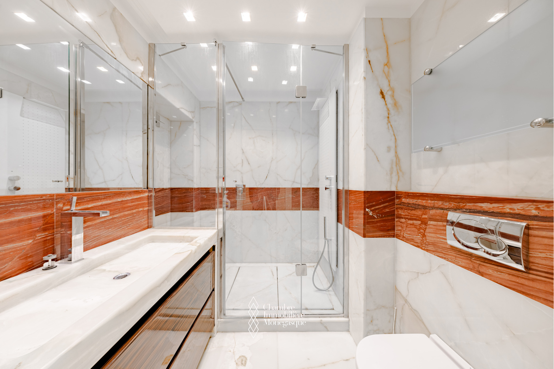 Ce magnifique appartement 4 pièces, récemment rénové avec des matériaux de qualité, se distingue par ses beaux volumes et son agencement fonctionnel. Il se compose d’un séjour lumineux, prolongé par une grande terrasse offrant une vue dégagée et apaisante sur les jardins du Casino, idéal pour profiter du calme et de l’élégance du Carré d’Or.