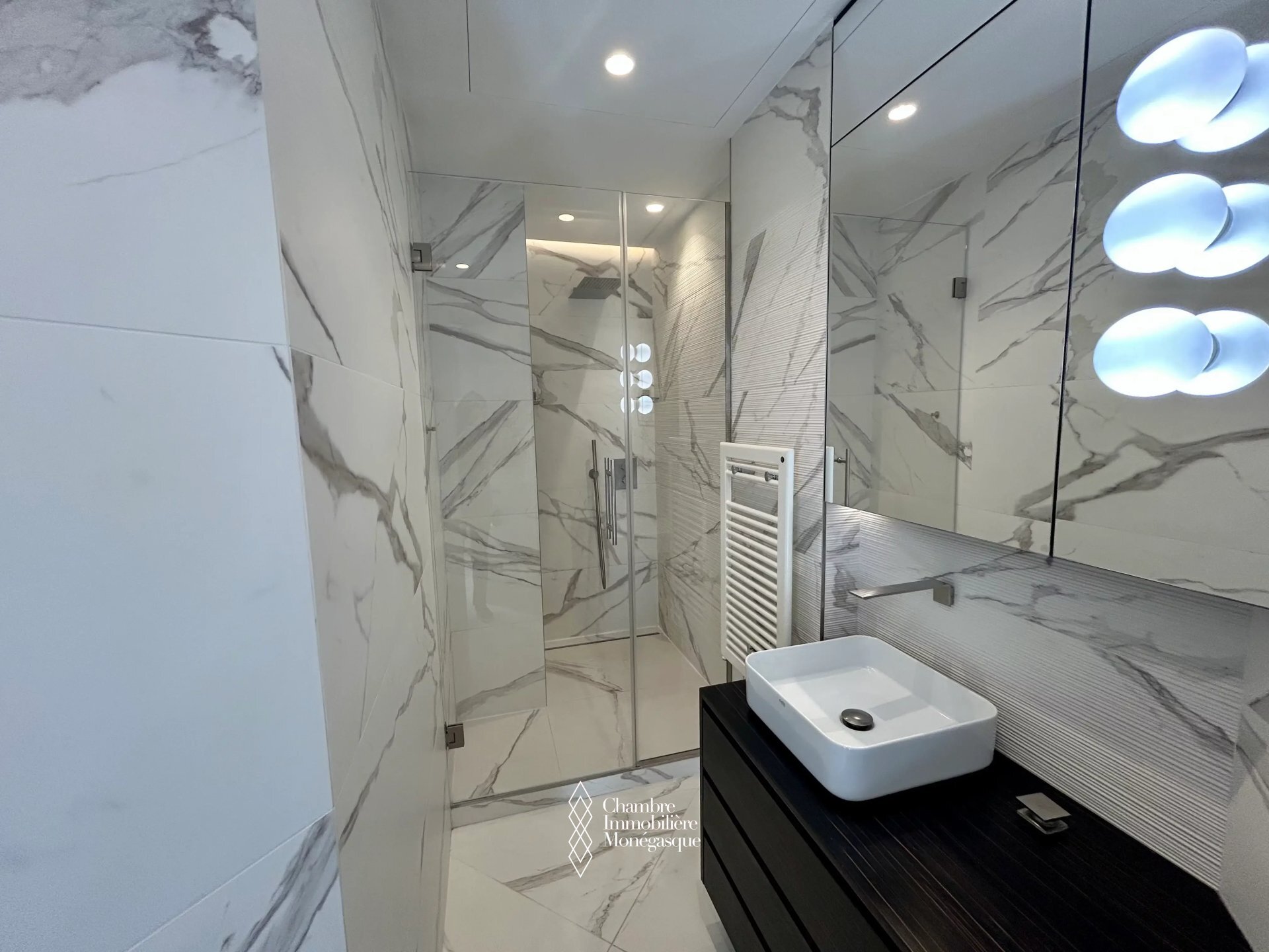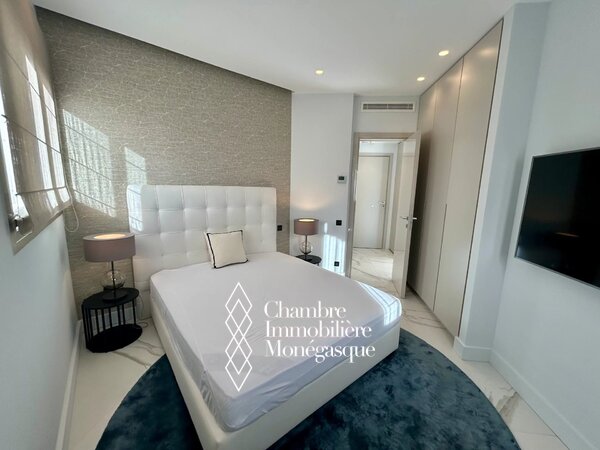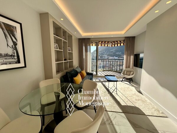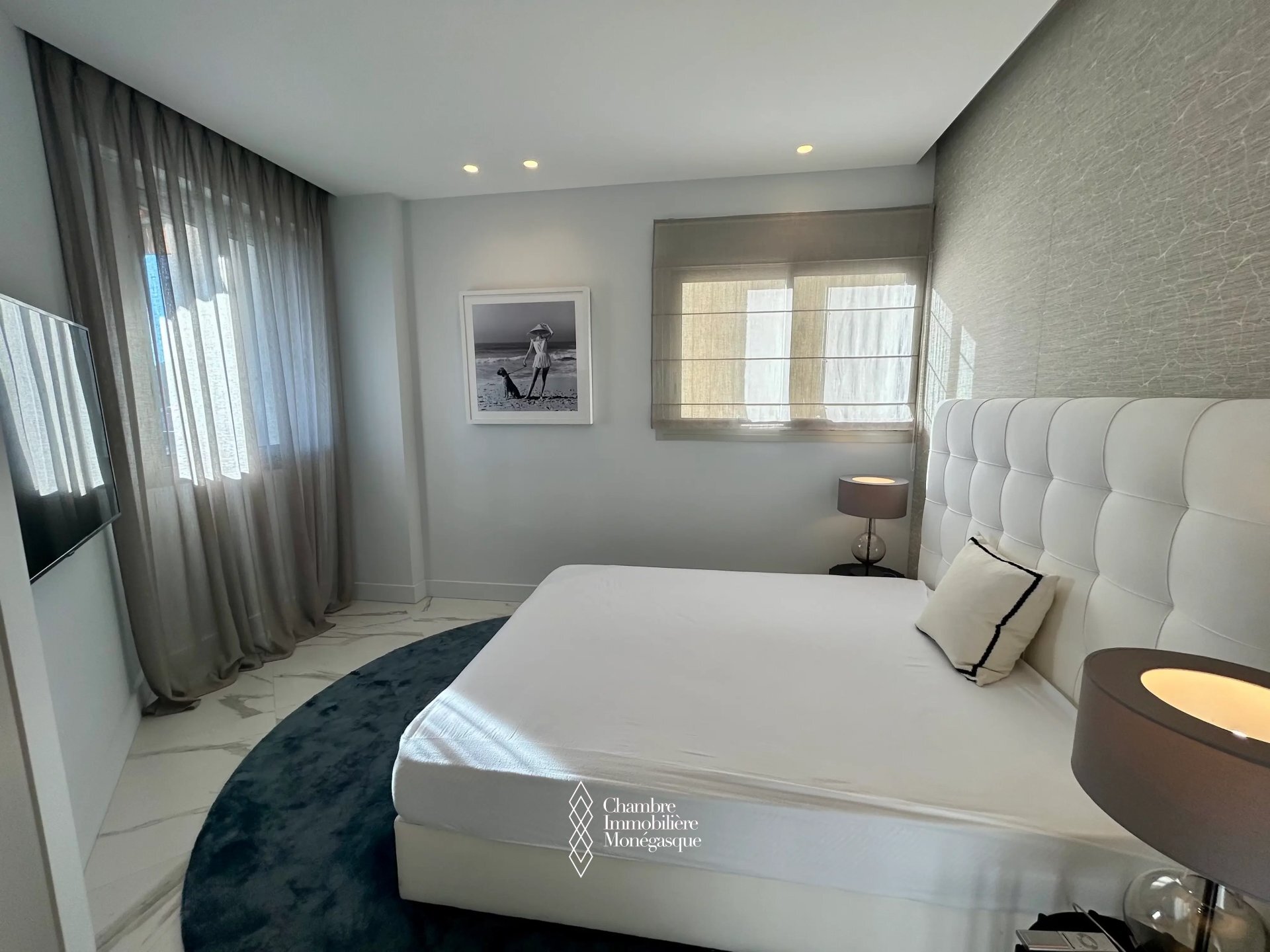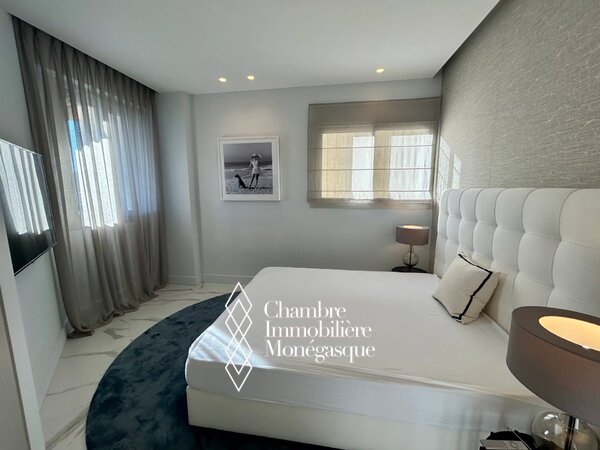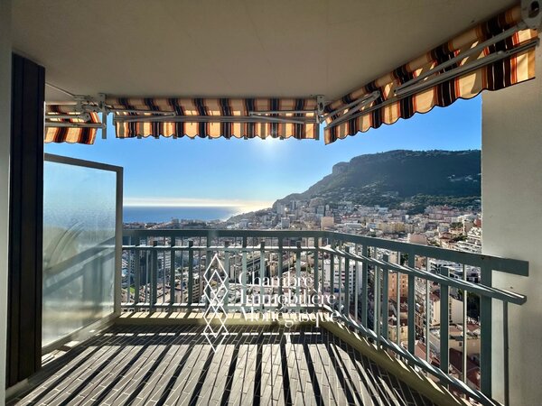 Situé au 27ème étage, cet appartement rénové avec des prestations haut de gamme bénéficie d’une vue panoramique sur la mer, le port et le Rocher offrant un cadre de vie luxueux.