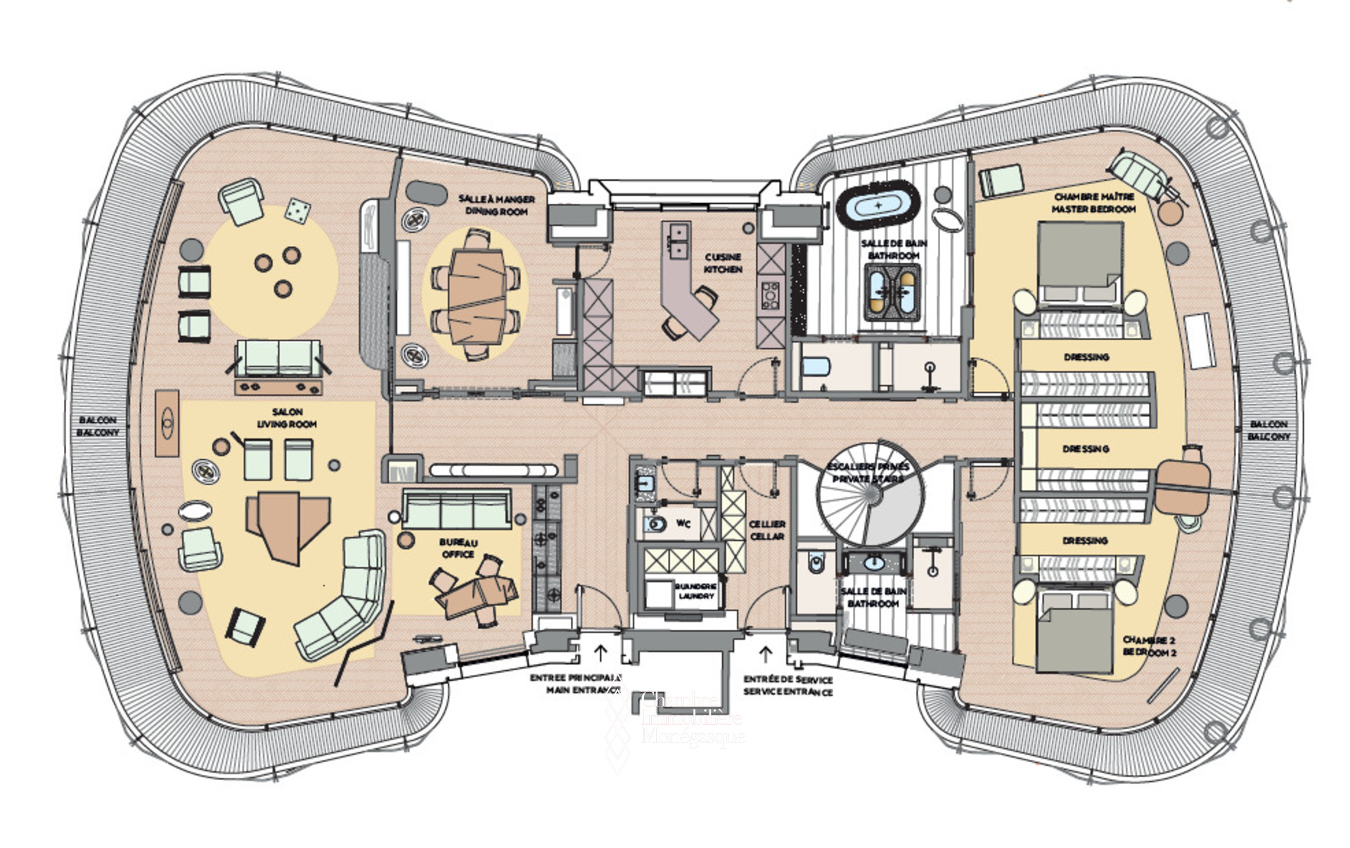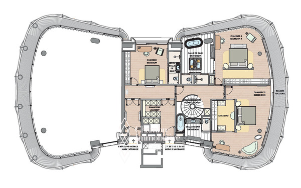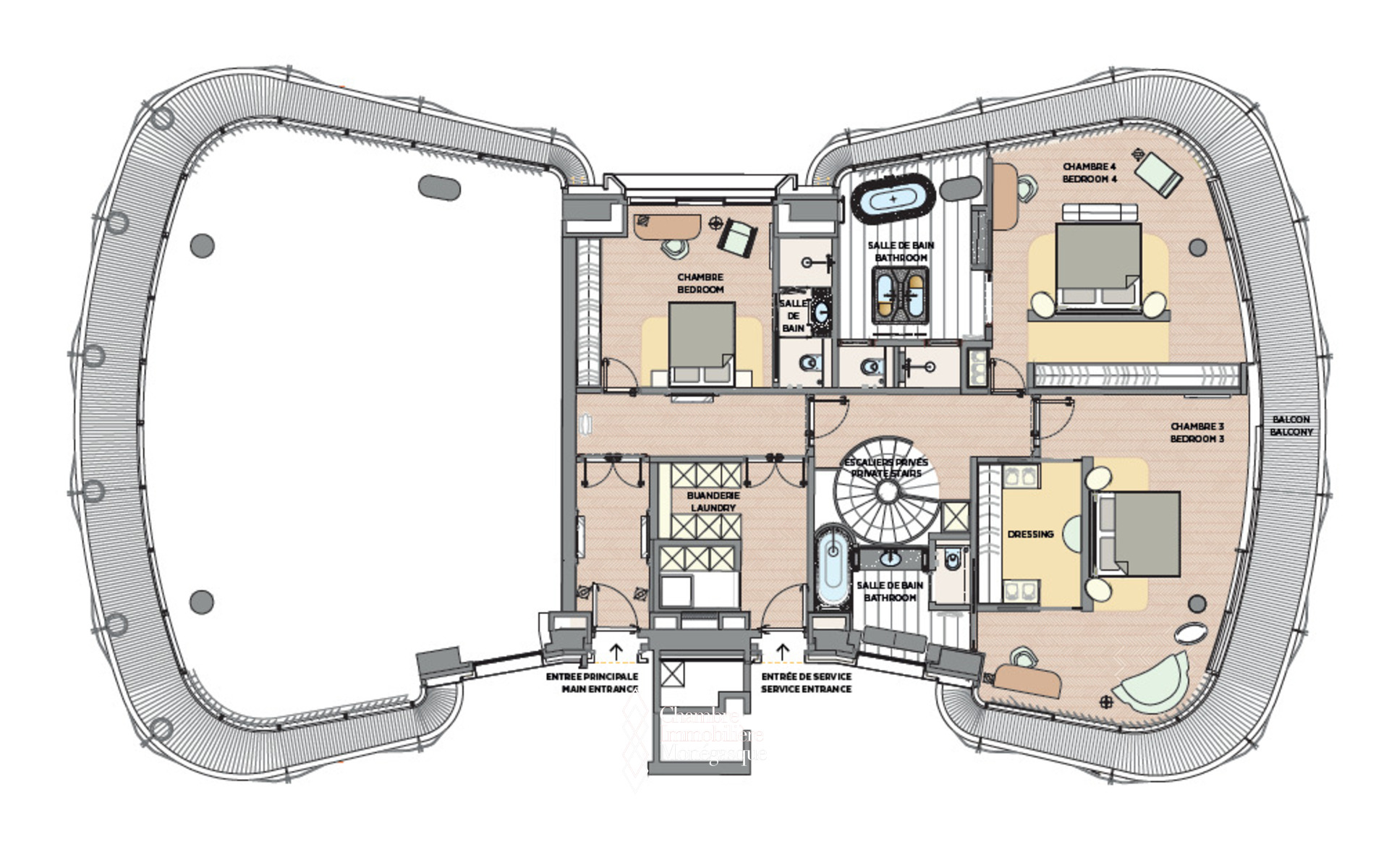 Celui-ci est entièrement rénové, il offre des volumes généreux et un confort absolu, il se compose de 5 chambres, chacune avec sa salle de bains privative, d’un vaste séjour lumineux, et d’une cuisine moderne entièrement équipée.