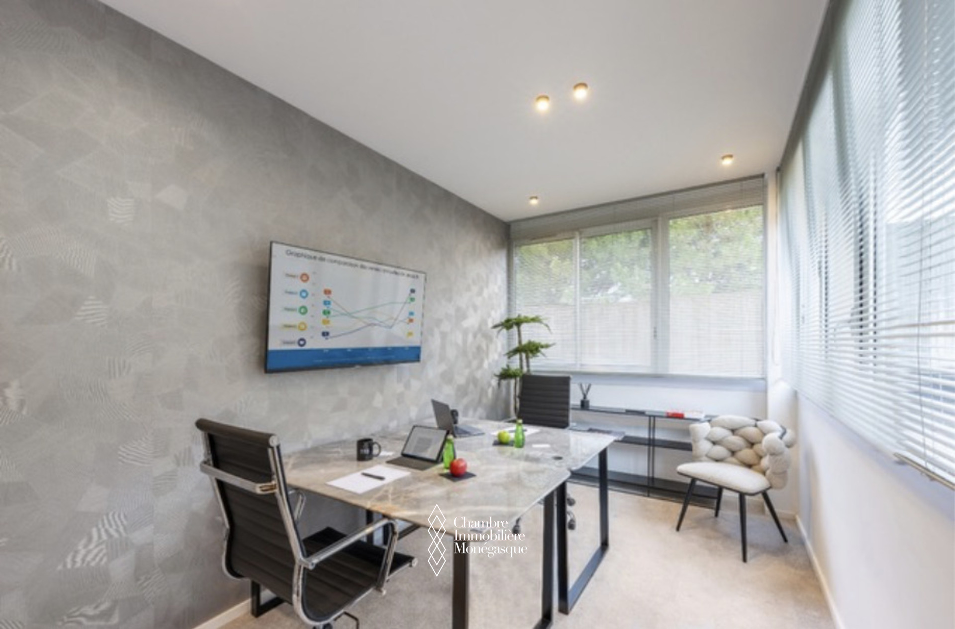 Situé dans le Thales à Fontvieille, un lieu d'affaires privilégié pour travailler et établir des connexions professionnelles dans un environnement où le design élégant fusionne avec le confort et la fonctionnalité, au cœur du quartier d'affaires de Monaco. C'est l'emplacement idéal pour votre bureau, offrant un espace parfait pour vos employés ou pour travailler confortablement depuis notre Business Lounge entièrement équipé.