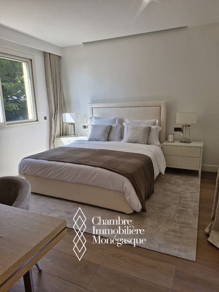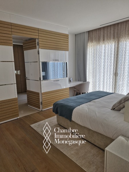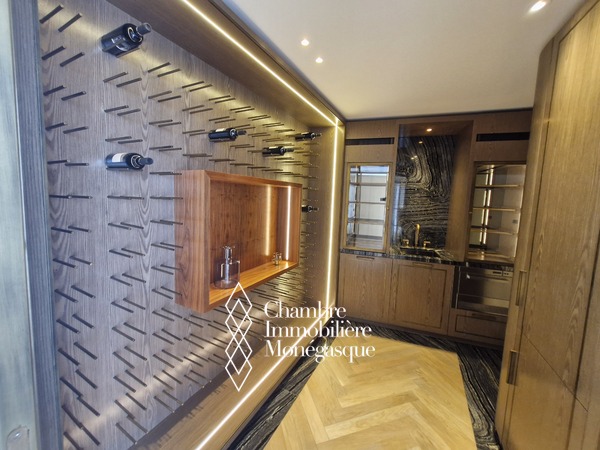 L'appartement est directement accessible par un ascenseur privatif et est composé au 5ème étage par un lumineux séjour avec cuisine ouverte entièrement équipée et dotée d'un îlot central. Cette pièce ouvre sur une large terrasse aménagée avec un vue imprenable sur la principauté. chambres en -