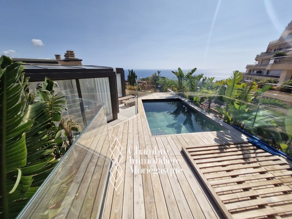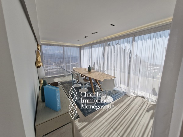 Ce penthouse d'exception, configuré en Duplex et offrant une terrasse sur le toit avec piscine privative et une panoramique sur la Principauté et au-delà.