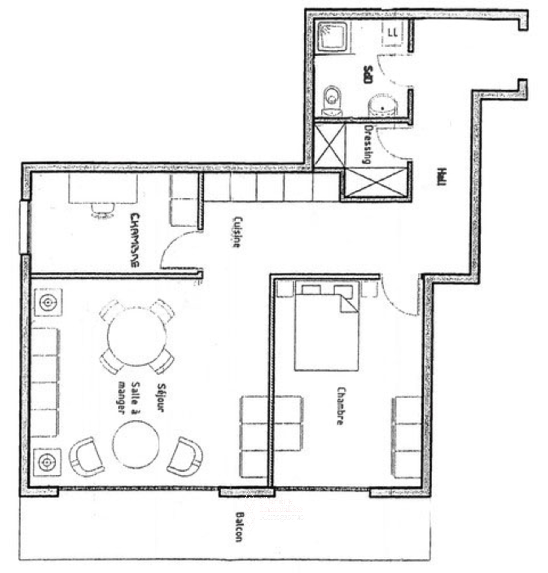 Composé d'une entrée, grand salon/salle à manger, deux chambres, dressing, salle de douches, cuisine équipée. Une cave.
