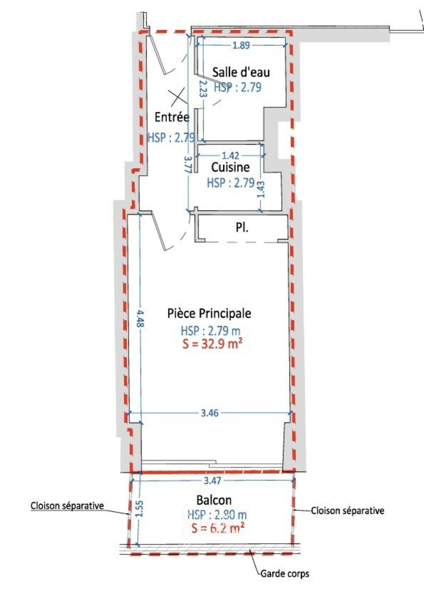 Superf. terrasse6.20 m²