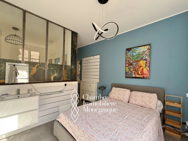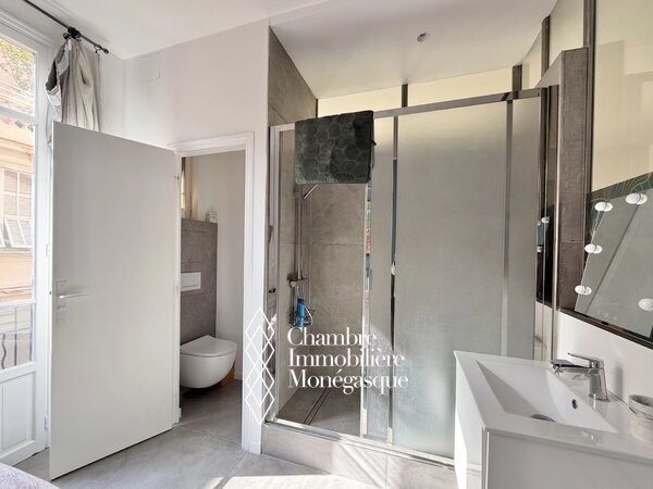 MONACO-VILLE – VENTE STUDIO AMÉNAGÉ EN 2 PIÈCES – PLEIN DE CHARME À deux pas de la Place de la Mairie, au cœur de Monaco-Ville, découvrez ce superbe studio de 45 m² habitables, récemment rénové avec soin pour exploiter pleinement tout son potentiel. Situé dans un immeuble bourgeois plein de cachet, il a été intelligemment transformé en 2 pièces, comprenant un séjour / salle à manger avec cuisine ouverte, une chambre confortable avec espace douche, et des toilettes séparées. Ce bien rare séduit par ses deux balcons et son mélange harmonieux entre charme de l’ancien et modernité. Soumis aux dispositions de la Loi 1235.
