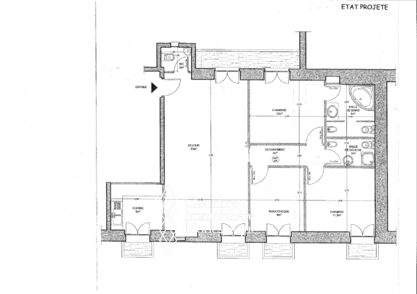 Appartement de 4 pièces principales, libre de loi, au 1er étage d’un immeuble sis Rue Princesse Marie de Lorraine , composé : d’une entrée, séjour, cuisine équipée, deux chambres à coucher, une salle de bains, une salle de douche et une bibliothèque.