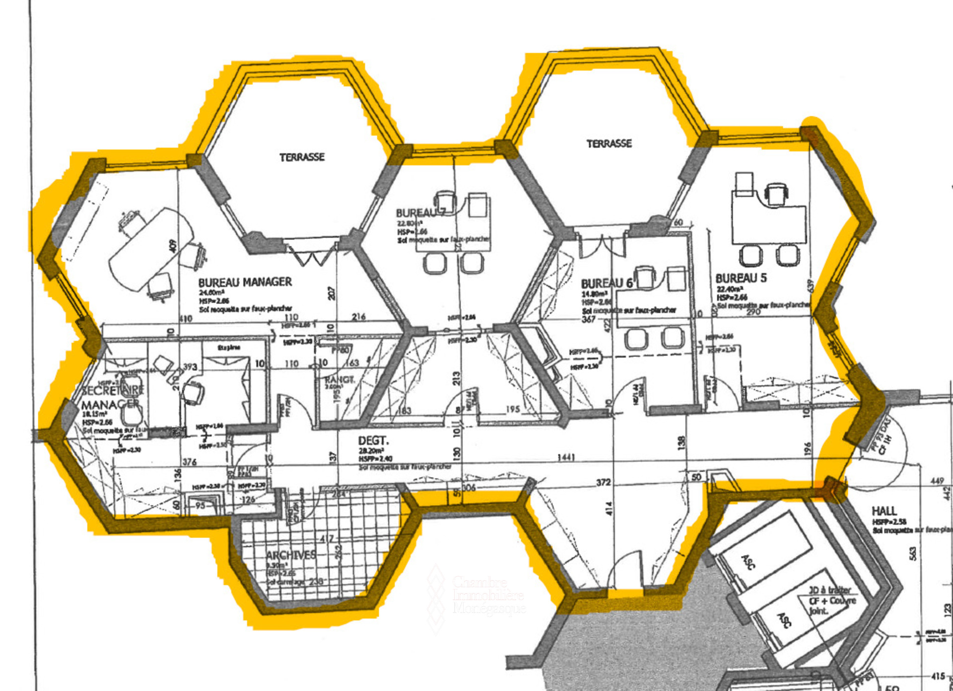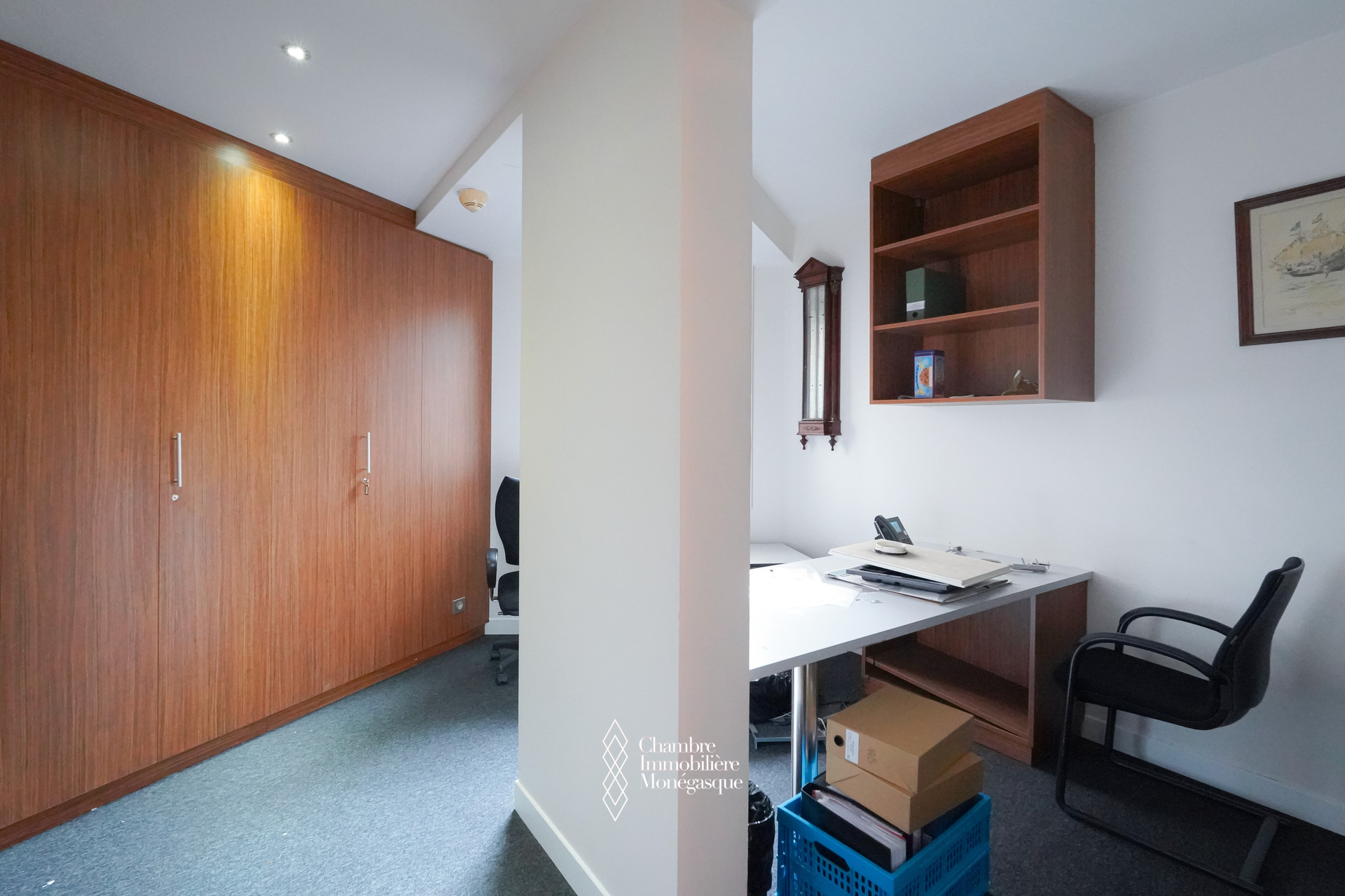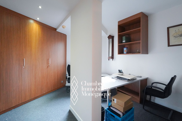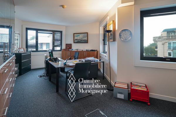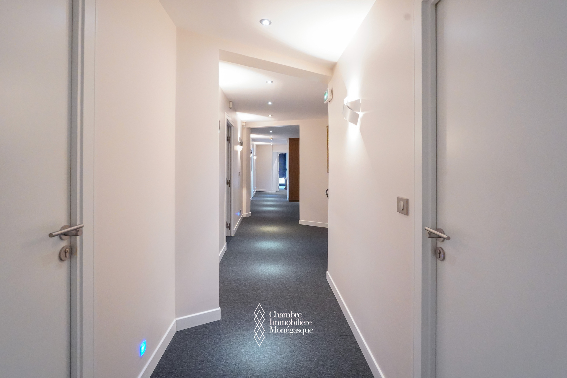 Grand espace de bureaux d'une superficie totale de 200m2. Il se compose d'un entrée avec espace d'accueil, de 5 bureaux indépendants donnant sur l'avenue des Citronniers, dont deux avec leur terrasse. L'une d'entre elle offrant une petite échappée sur le circuit de Formule 1. Un espace de stockage ou archives et des sanitaires. Les bureaux seront entièrement vidés (hors placards intégrés).