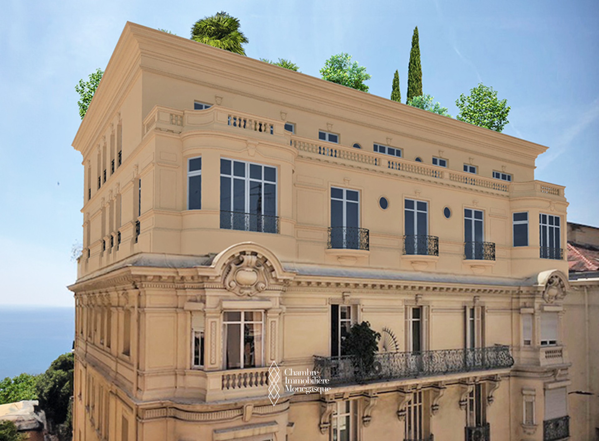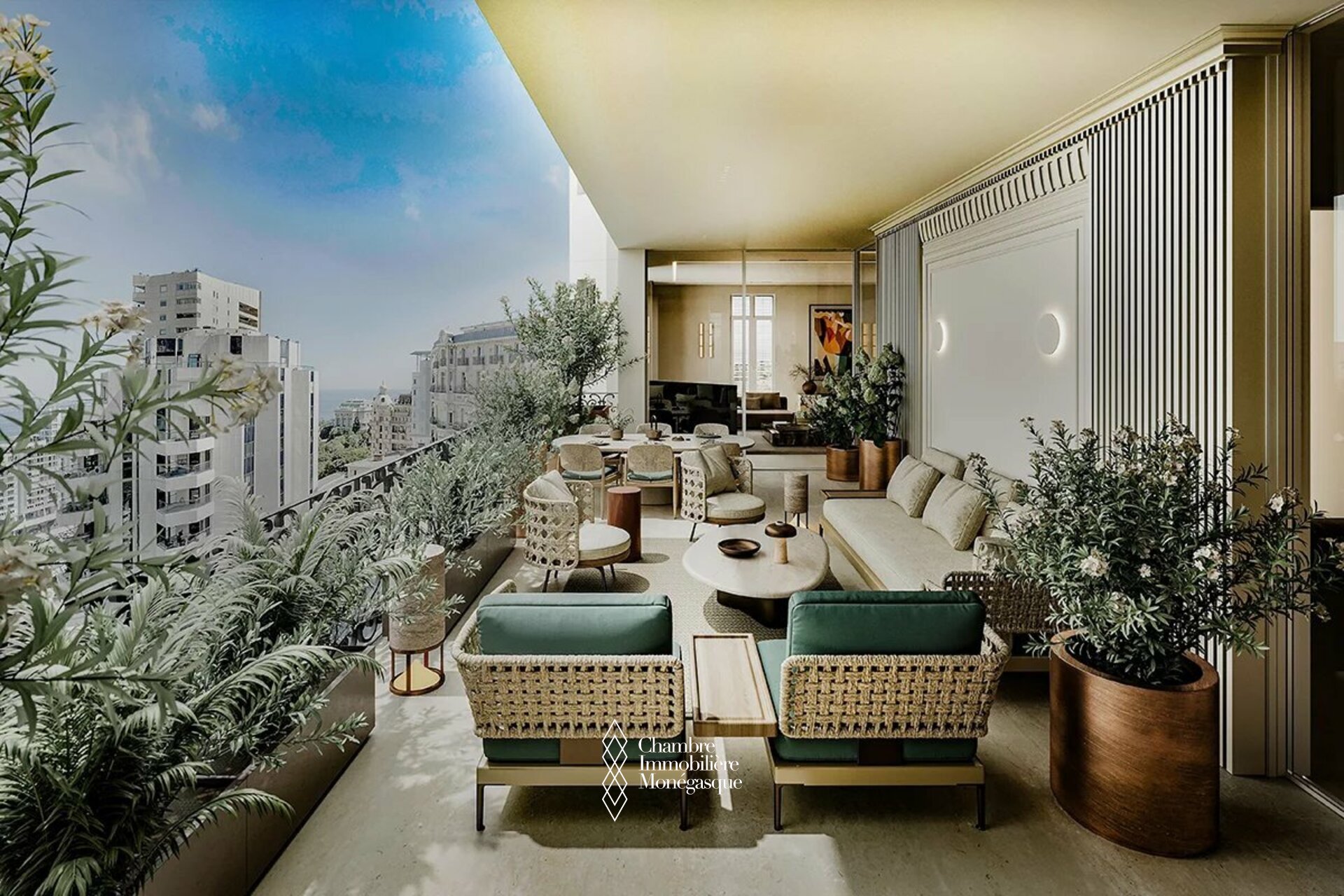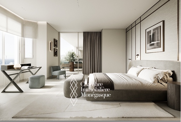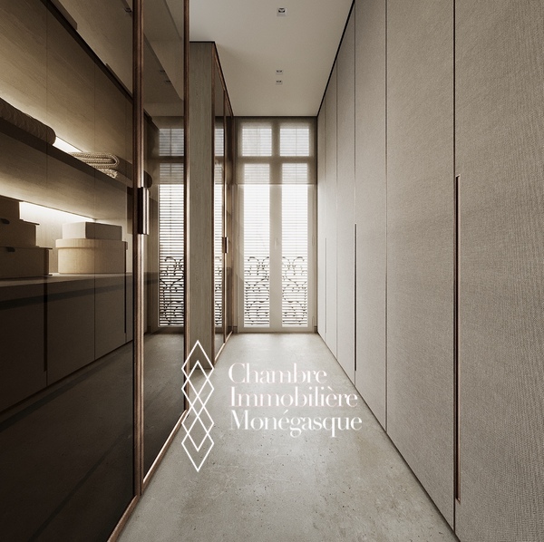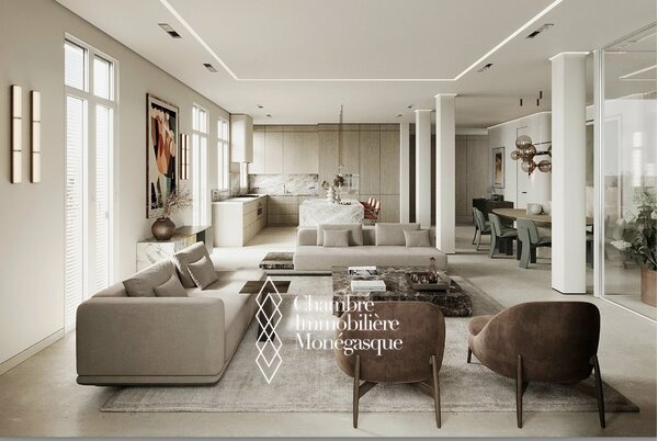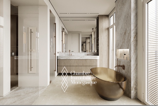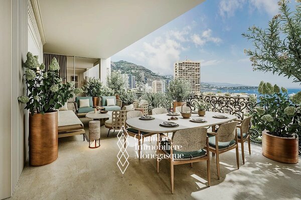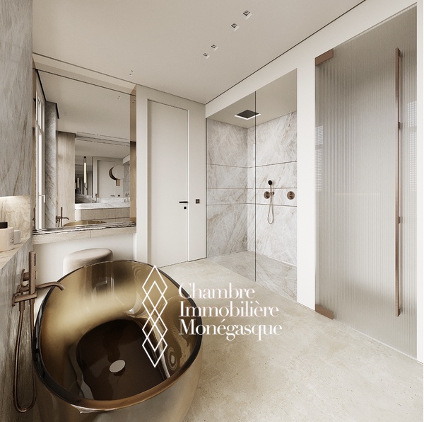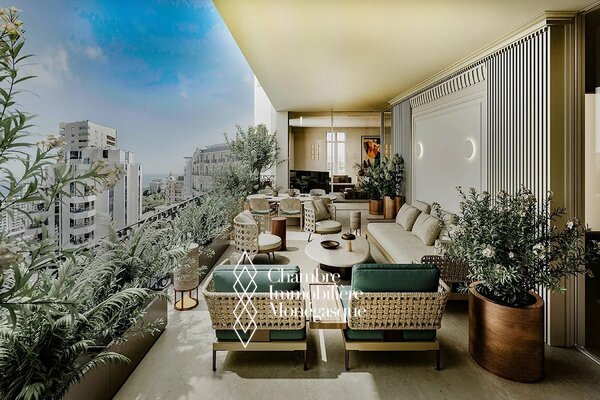 Cet appartement d'exception, actuellement en cours de construction, se distingue par son emplacement prestigieux et son cadre de vie privilégié au cœur de Monaco. L'appartement est accessible par deux entrées : depuis le Boulevard des Moulins et l'Avenue de Grande Bretagne, directement sur l'une des plus belles places de la Principauté, le Square Winston Churchill. Cet emplacement permet d'accéder à des boutiques de luxe exclusives, à des restaurants haut de gamme et à la place du Casino, mondialement connue. Cette propriété unique s'étend sur tout l'étage et offre une vue panoramique à 360° à couper le souffle. L'intérieur se distingue par une hauteur de plafond de plus de 3 mètres, ce qui confère à l'appartement une ambiance élégante et majestueuse. L'une des caractéristiques les plus remarquables de cet appartement sont les baies vitrées du sol au plafond, qui s'escamotent partiellement et offrent ainsi une ouverture aérée. Vous pourrez ainsi profiter pleinement de la vue imprenable sur la mer avec vos invités sur la terrasse. Les matériaux nobles et soigneusement sélectionnés confèrent à cet appartement un charme unique et en font un véritable joyau de la Principauté, où raffinement et luxe se côtoient harmonieusement. Un ascenseur privé menant directement à l'appartement vous garantit une intimité totale et un confort inégalé. Les travaux de construction devraient s'achever en avril 2026 et vous présenteront un bien d'exception qui sera sans aucun doute l'un des plus beaux de Monaco. Si vous êtes intéressé, vous aurez encore la possibilité de personnaliser le design intérieur selon vos souhaits pendant la phase de construction.