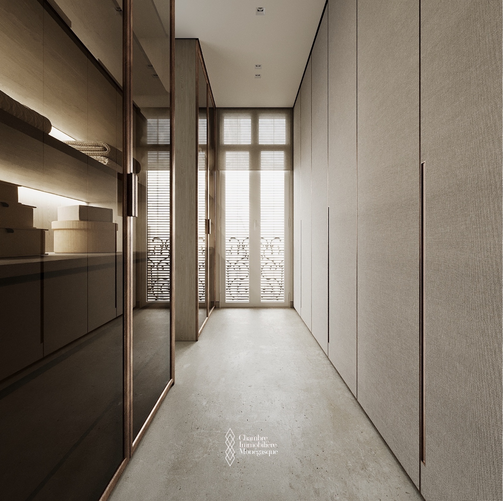 La chambre principale dispose d'un grand dressing et d'une salle de bain luxueuse attenante.