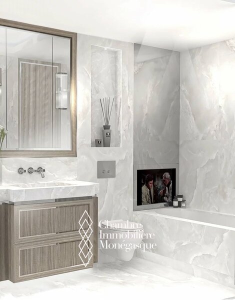 Ce magnifique appartement de 3 pièces est actuellement en cours de rénovation complète et sera disponible à la location à partir du 15 octobre 2025. Il sera équipé avec des matériaux de haute qualité, doté de nouvelles fenêtres et meublé avec style – idéal pour tous ceux qui recherchent un logement luxueux dans un emplacement privilégié à Monaco. Un atout majeur est la grande terrasse offrant une vue imprenable sur la mer. L’appartement ne laisse rien au hasard : parquet noble, sol en marbre élégant ainsi que des aménagements en bois sur mesure créent une ambiance résidentielle exclusive. L’appartement sera équipé d’un chauffage au sol ainsi que de haut-parleurs intégrés dans les chambres, les salles de bains et le salon. La résidence renommée Mirabeau offre également à ses résidents une piscine et un confort de vie exceptionnel. L’emplacement de ce bien est excellent – la plage du Larvotto se trouve à seulement deux minutes, et l’Hôtel de Paris, le Métropole ainsi que le célèbre Carré d’Or sont également à quelques pas. De plus, le bâtiment comprend une salle de sport ainsi que le restaurant mondialement connu Cipriani, situé directement dans la résidence. L’appartement comprend également une place de parking en sous-sol ainsi qu’une cave séparée. Emménagez, sentez-vous bien et profitez pleinement de la vie à Monaco !