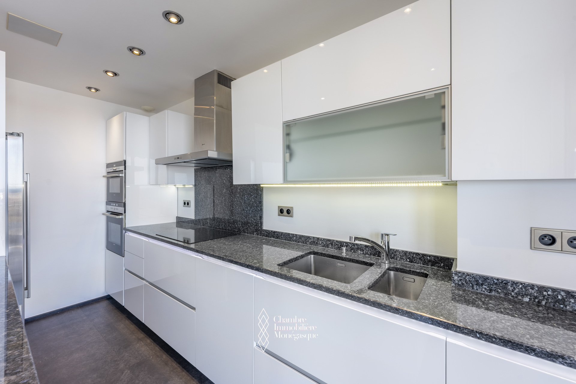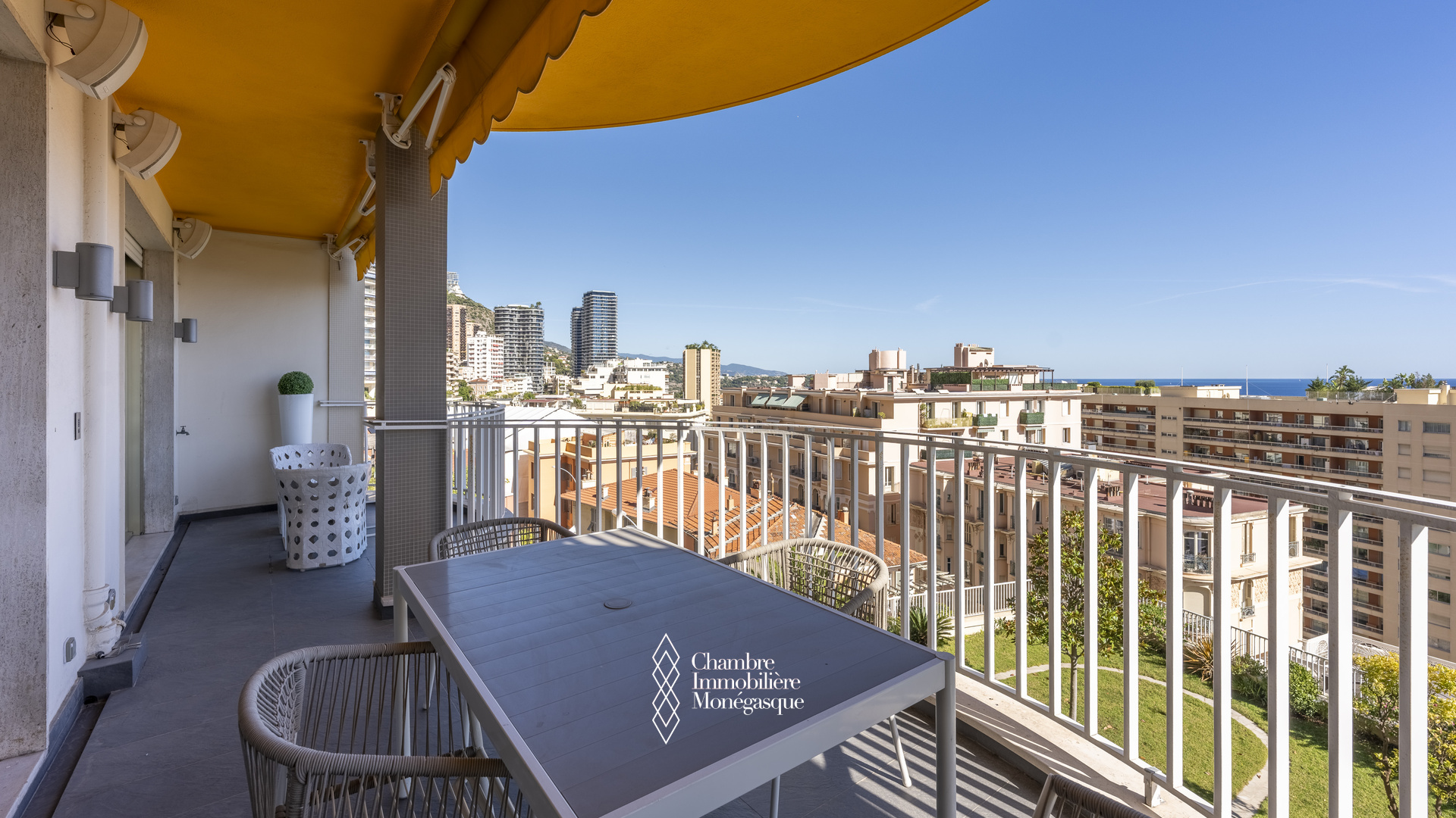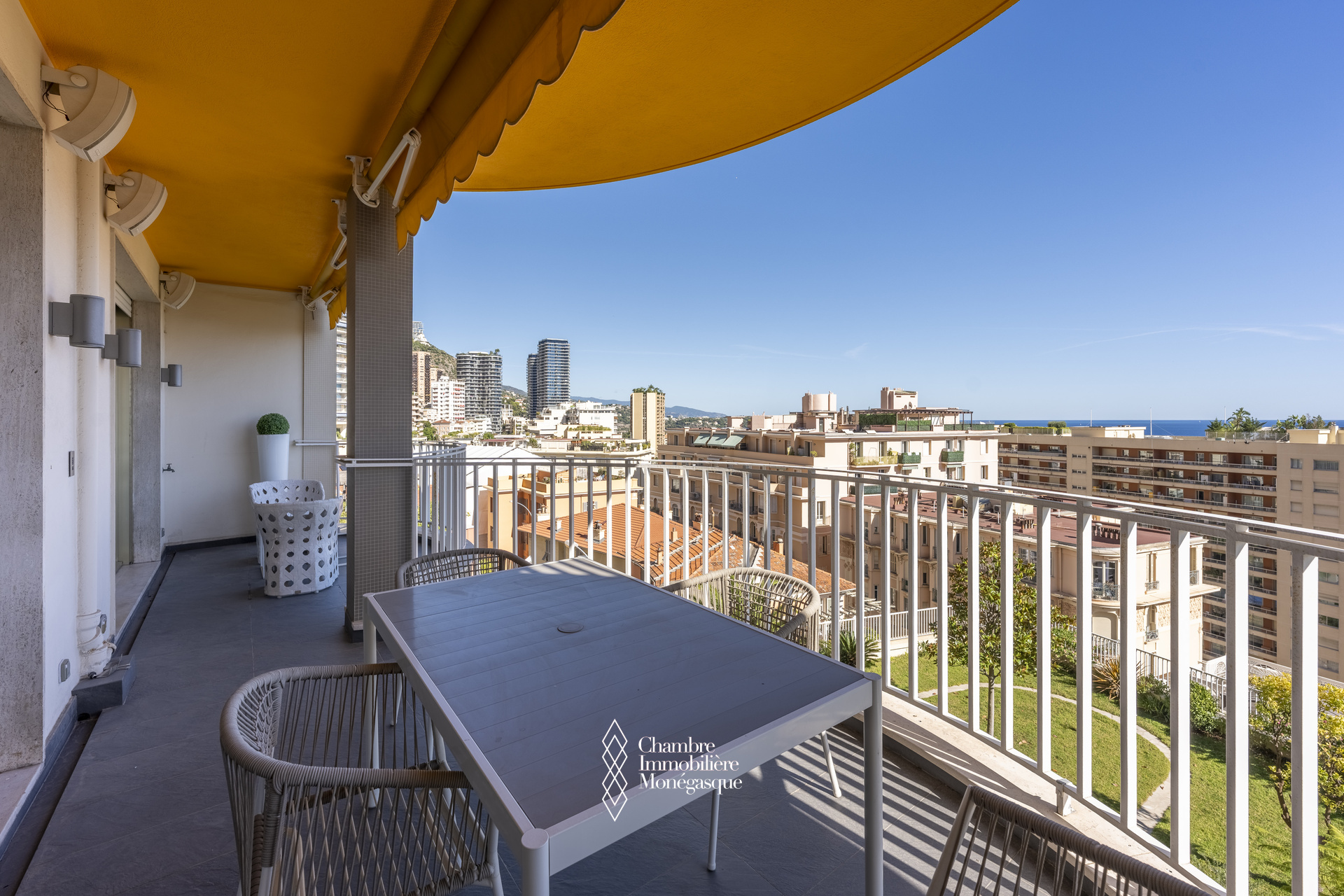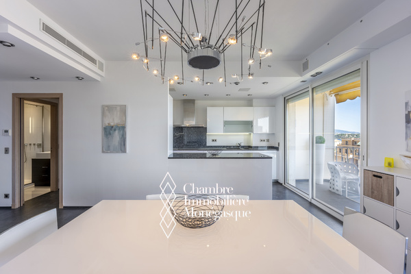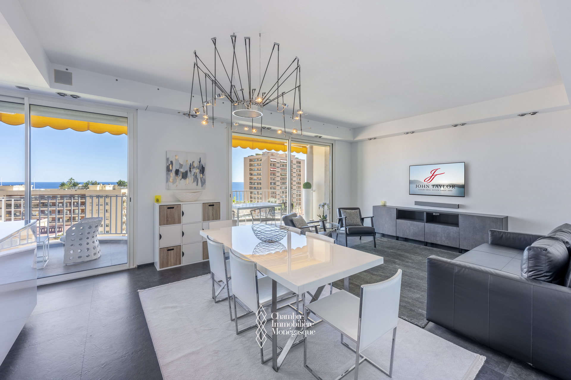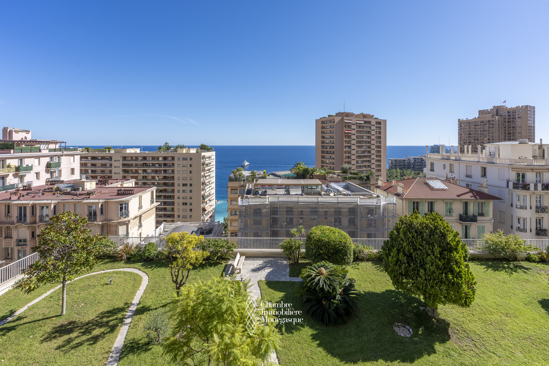Située dans la prestigieuse résidence Les Abeilles, à quelques pas du Boulevard des Moulins et des plages du Larvotto, cette adresse rare séduit par son jardin privatif, sa conciergerie et son cadre de vie raffiné. L’appartement, entièrement rénové avec des prestations haut de gamme, offre de superbes volumes et une vue mer panoramique depuis sa vaste terrasse.