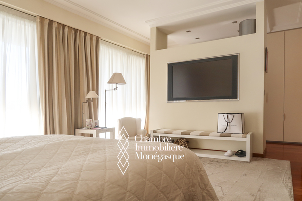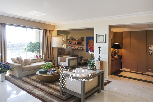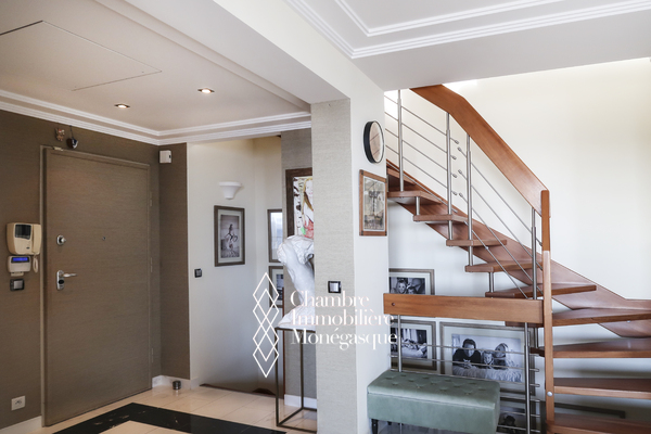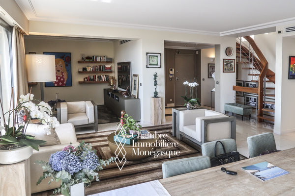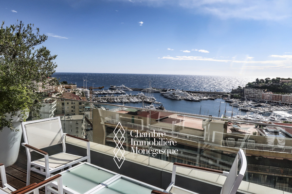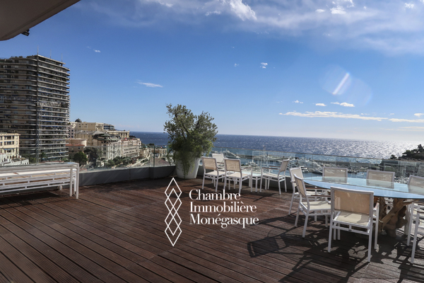 Ce triplex en penthouse de 5 pièces, situé dans le quartier de la Condamine, au sein de la résidence "Harbour Crest", offre des volumes remarquablement spacieux, parfaitement adaptés à une famille. Ce bien d'exception se distingue par un double séjour, salon et salle à manger, s'ouvrant sur une vaste terrasse lumineuse, offrant une vue panoramique à couper le souffle sur la mer et le port Hercules. La cuisine, entièrement aménagée et équipée avec de belles finitions, est également idéale pour répondre aux besoins d'une famille. L'appartement dispose de quatre chambres aux dimensions spacieuses, chacune accompagnée de sa salle de bains privative, offrant ainsi un confort absolu. Un élégant escalier mène directement au dernier étage, où un toit-terrasse exceptionnel se révèle, une rareté avec une vue panoramique époustouflante sur la mer et le port de Monaco. Ce penthouse constitue une opportunité rare pour quiconque recherche un cadre de vie unique alliant luxe, espace, et une vue imprenable sur l'un des plus beaux panoramas de la Côte d'Azur. Sa conception, alliant élégance et fonctionnalité, en fait une résidence d'exception qui saura combler les attentes des plus exigeants. Ce bien est complété de trois emplacements de parking situés dans le même immeuble.