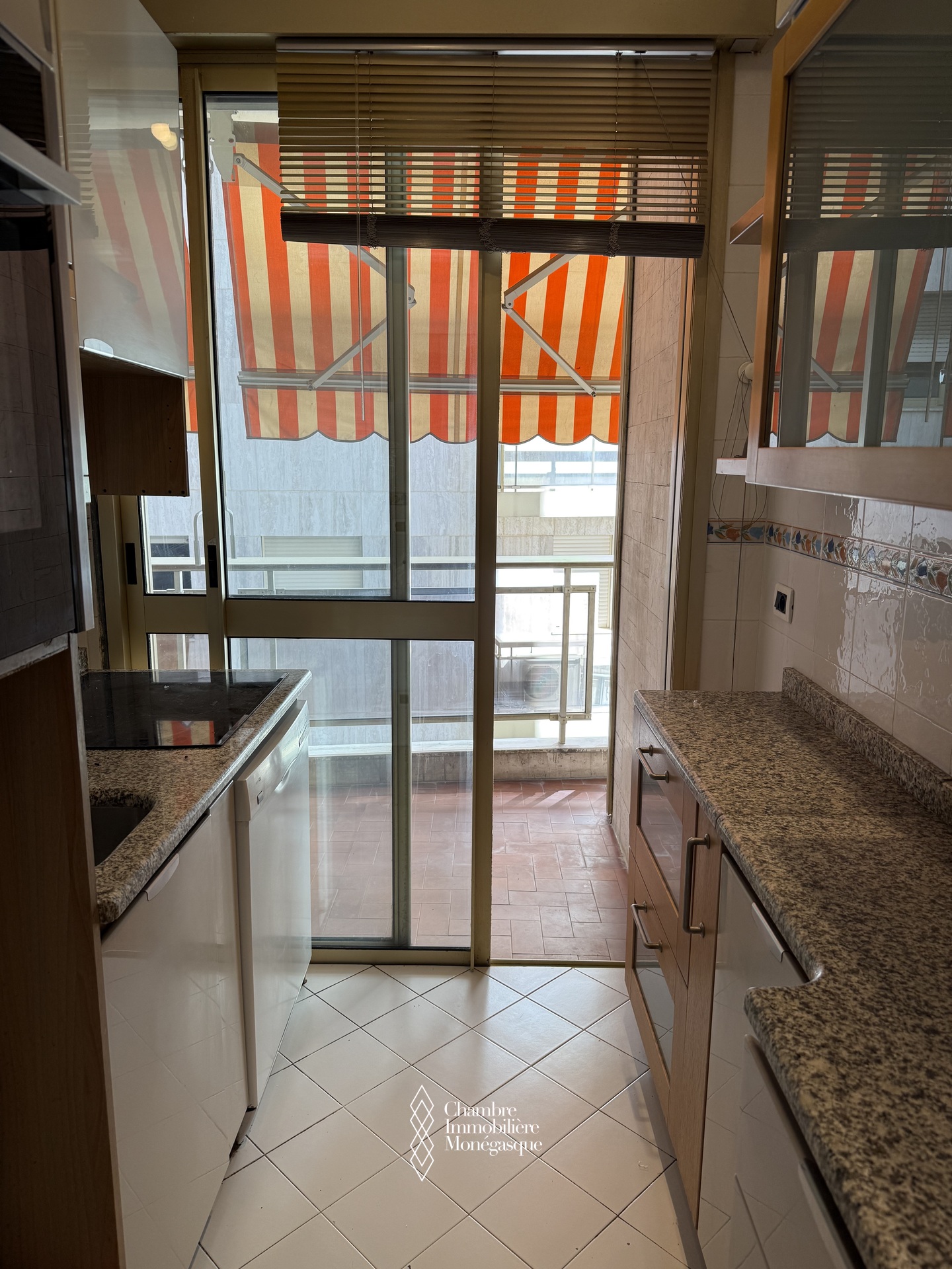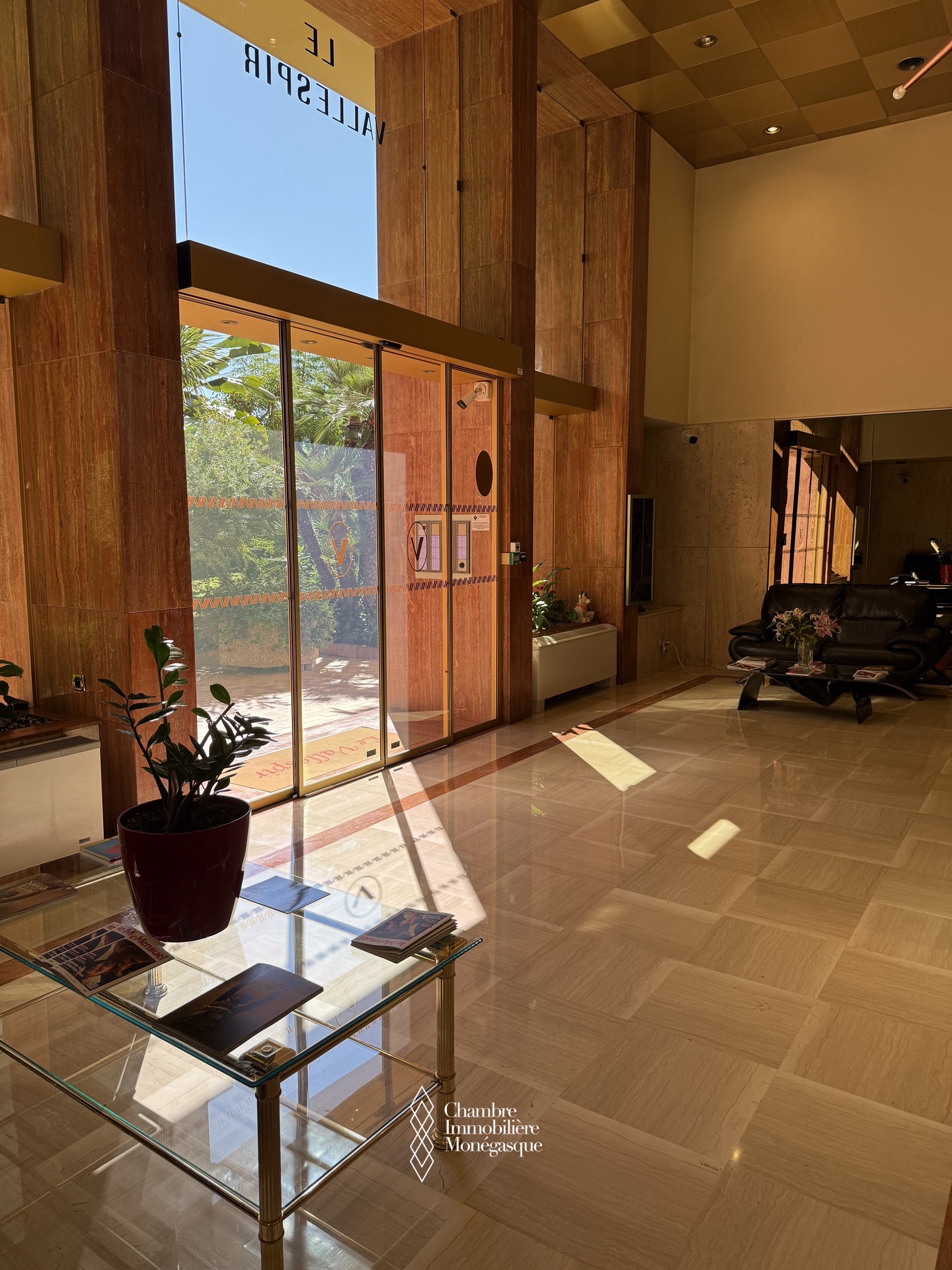 Cet appartement bénéficie d’un emplacement central, proche de toutes les commodités grace aux deux accès de l'immeuble : l’un permet de rejoindre directement la plage du Larvotto, à seulement deux minutes à pied, tandis que l’autre donne sur le boulevard d’Italie. L’immeuble est bien desservi par les transports en commun et entouré de commerces de bouche, boutiques de prêt-à-porter et restaurants.