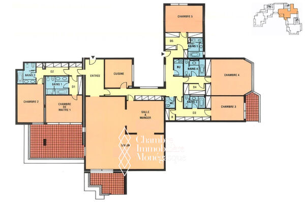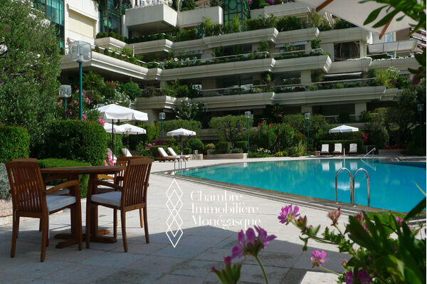6/7 pièces de luxe avec vue sur le jardin et la piscine, dans le quartier du Larvotto à Monaco. Dans une belle résidence de seulement 4 étages, cet appartement offre une surface totale de 472 m² dont 393.40 m² habitables et une terrasse de 78.74 m². Il dispose d'un grand salon/salle à manger ouvrant sur une terrasse, une cuisine indépendante, cinq spacieuses chambres, cinq salles de bain, grande loggia. Une cave, trois parkings et une cabine déshabilloir à la piscine complètent ce bien.