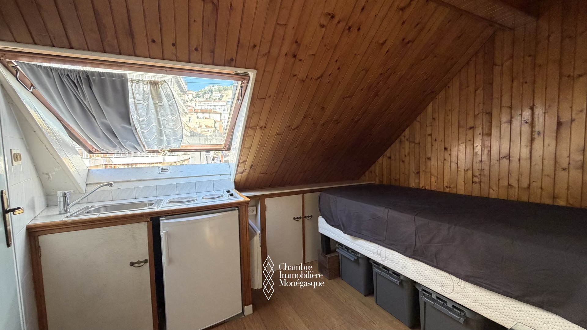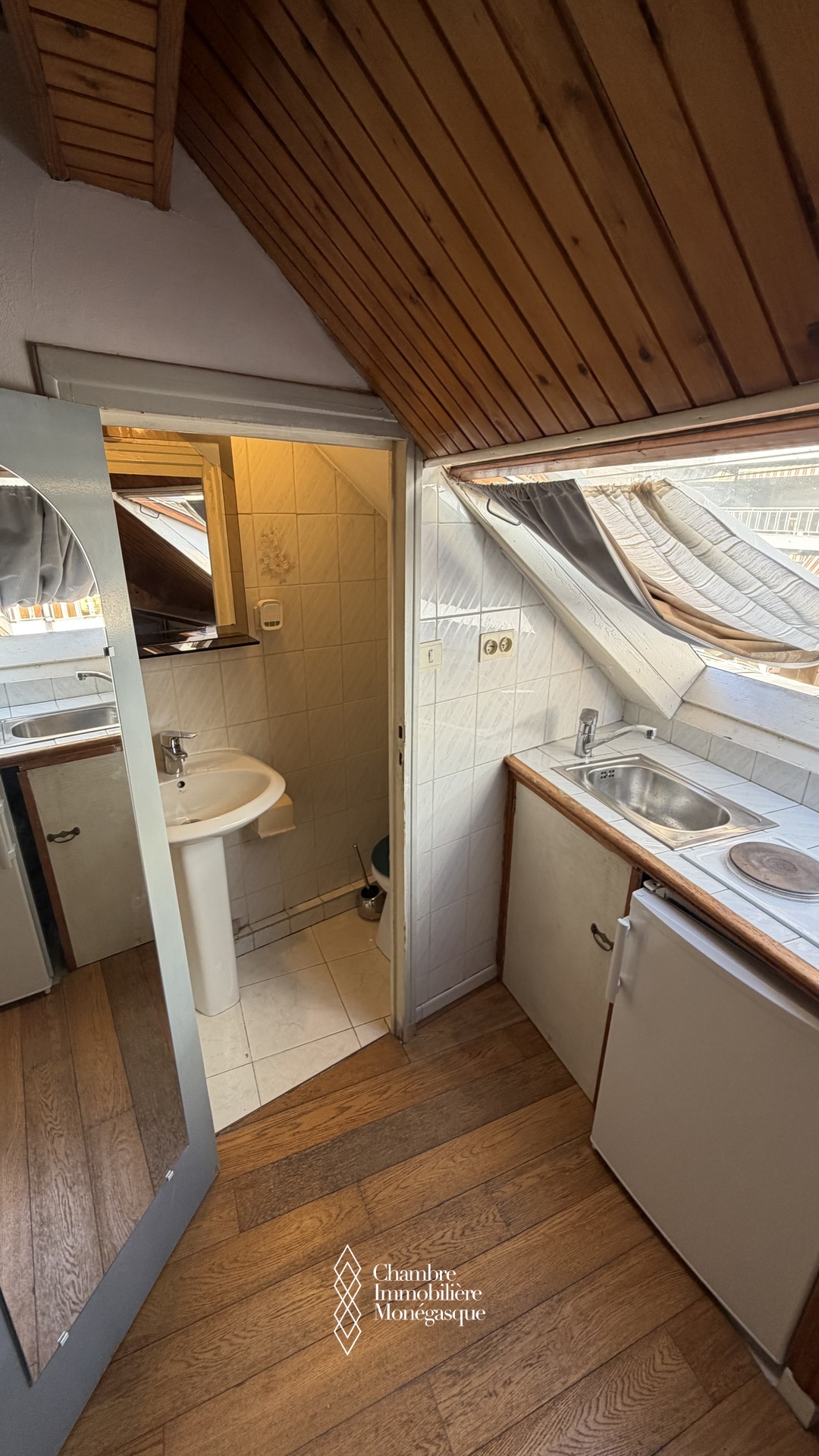 Située au 4ème et dernier étage avec ascenseur, elle est composée de : Pièce principale avec kitchenette, salle de douche avec WC.