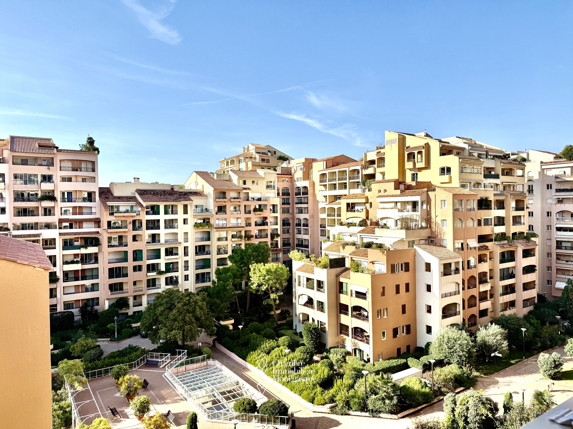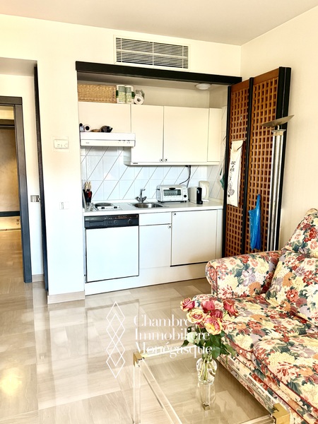 Dans un immeuble de très bon standing avec gardien, poste de garde 24/7, et piscine, très joli studio jouissant d'un environnement exceptionnel ! Au calme absolu avec sa vue sur les jardins, cet appartement est très agréable ! Vendu avec une cave et un double box dans l'immeuble ! Coup de coeur assuré !