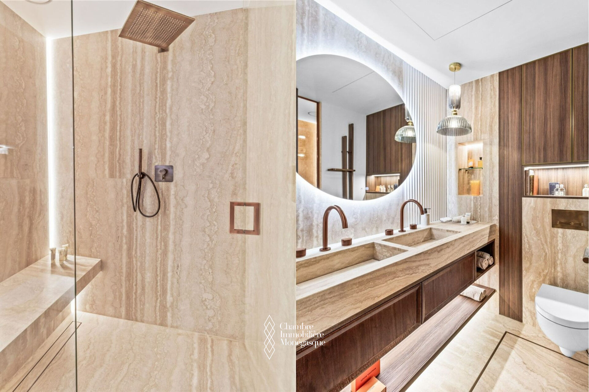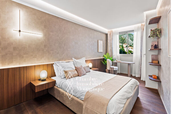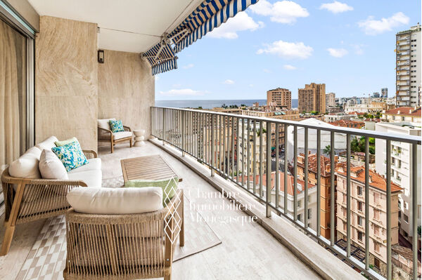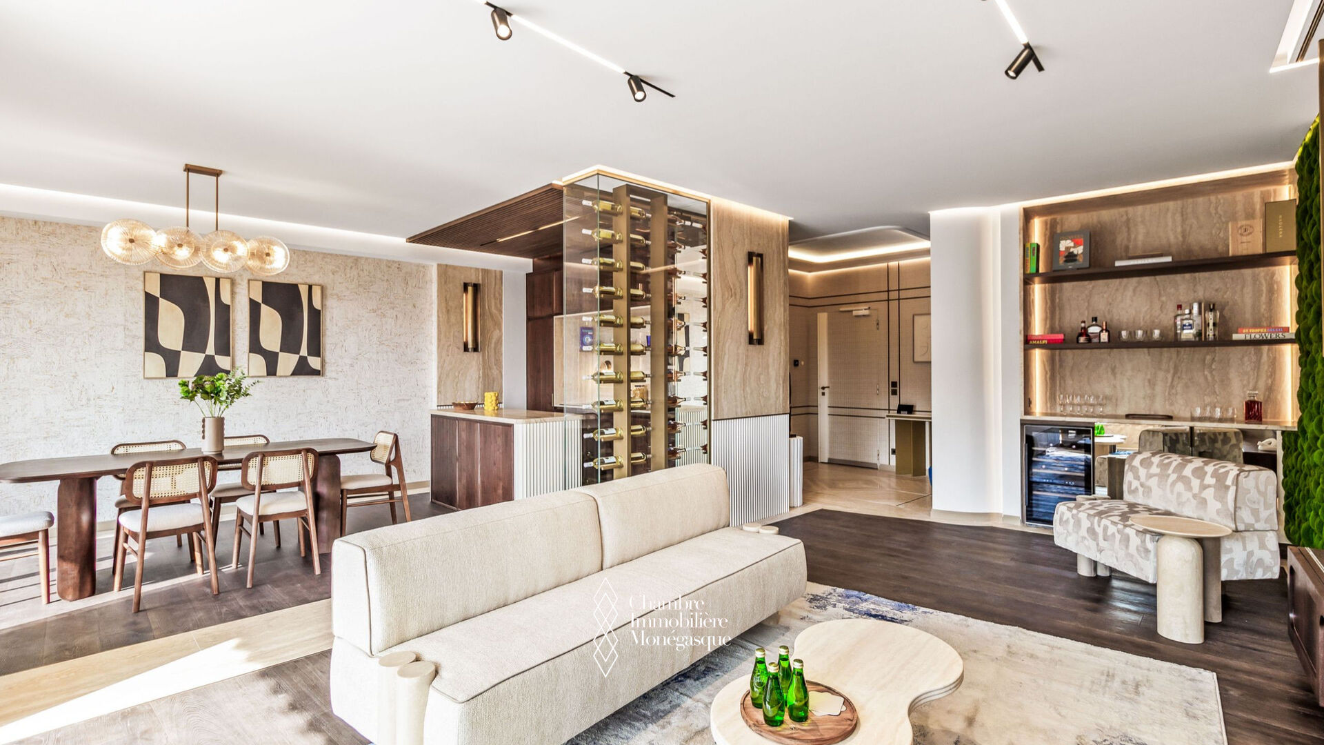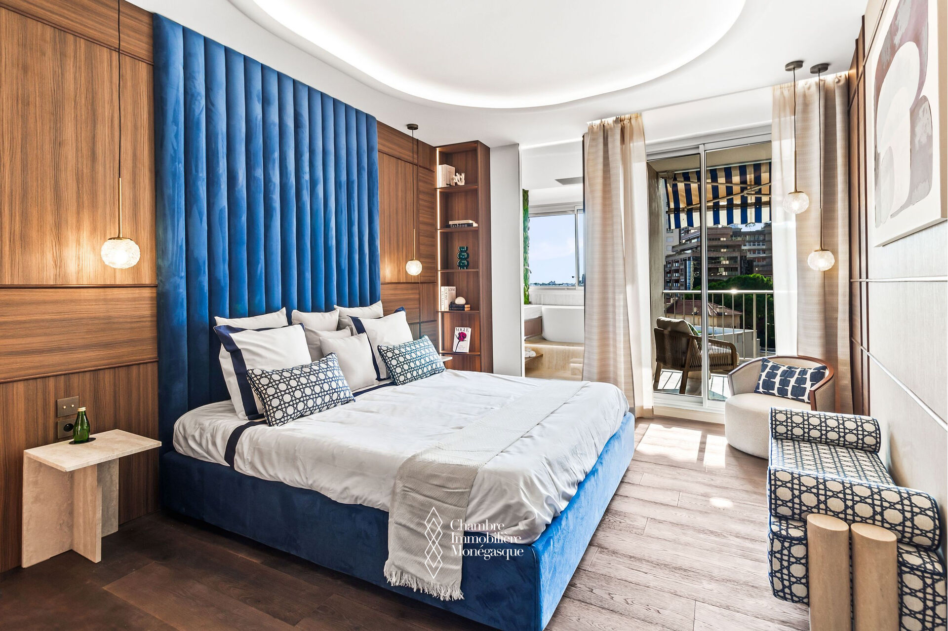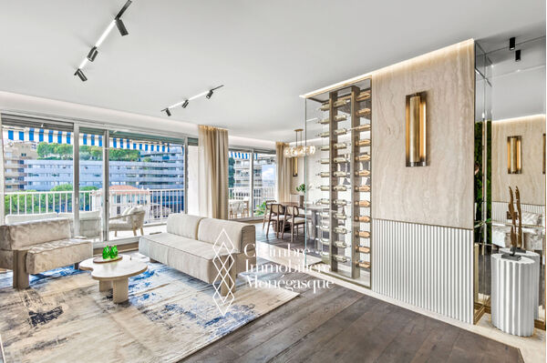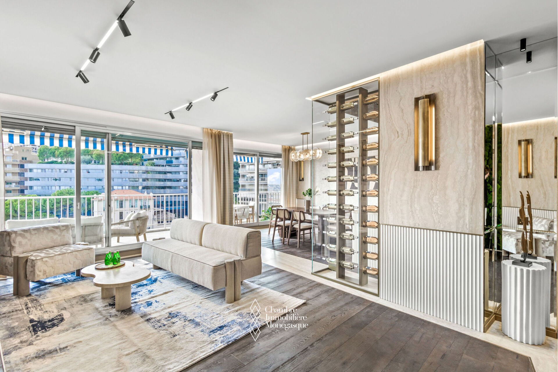 Situé dans la prestigieuse résidence Château Périgord I, cet appartement d'exception a été rénové minutieusement avec des matériaux et finitions luxueuses. Baigné de lumière, il offre une belle vue dégagée sur les toits de Monaco et la mer. Il se compose d'une cuisine américaine ouverte sur la salle à manger, d'un vaste salon, d'une suite parentale avec dressing et salle de bains privative, de deux autres chambres, chacune disposant de sa propre salle de bains, ainsi qu'une buanderie et des toilettes invités. Possibilité de parking.