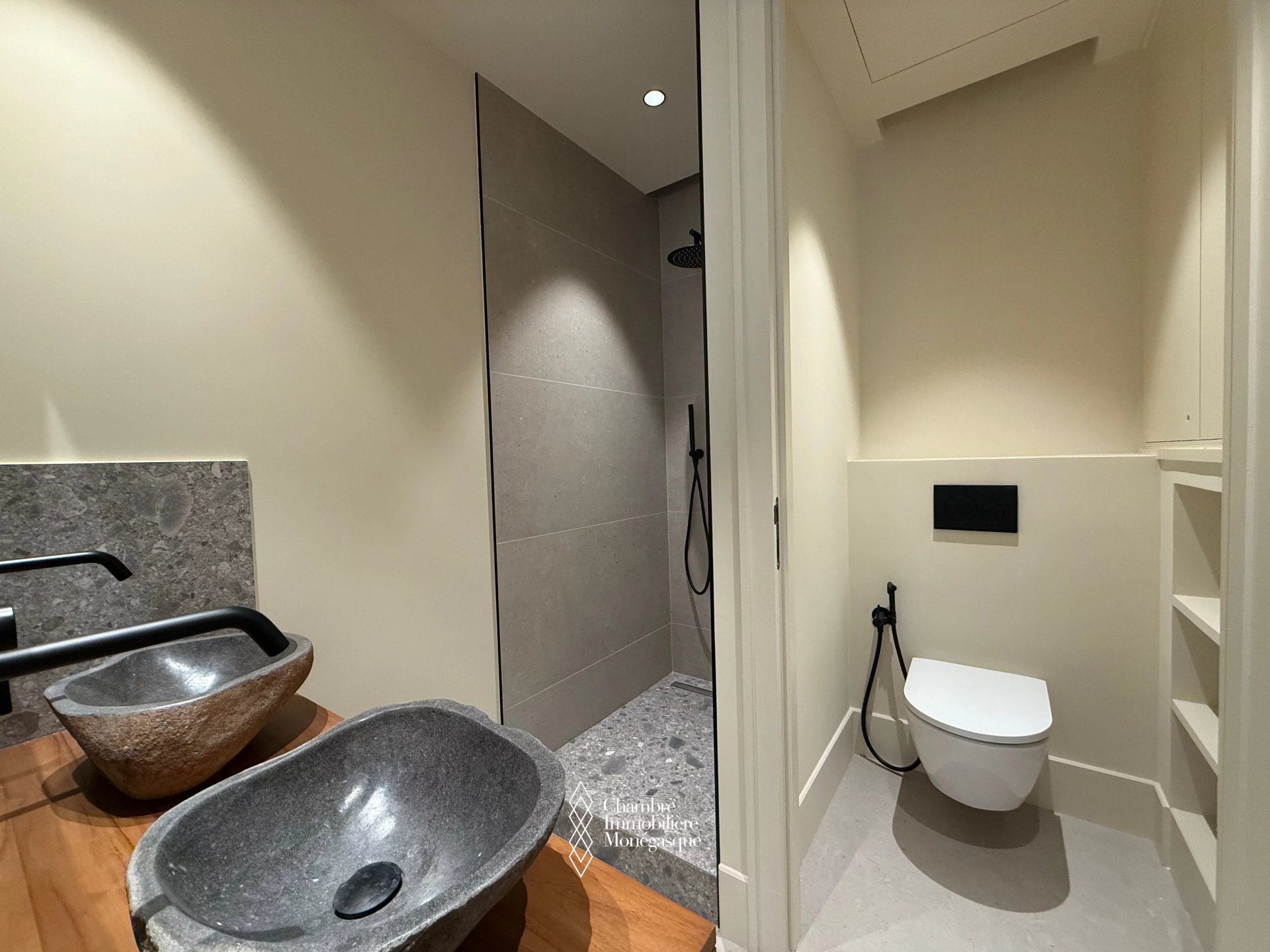 Le bien, entièrement rénové, se situe dans le secteur très recherché de Monte-Carlo, à quelques mètres seulement du Carré d’Or, dans un immeuble bourgeois, avec conciergerie, proche des commerces, des commodités et des plages du Larvotto.
