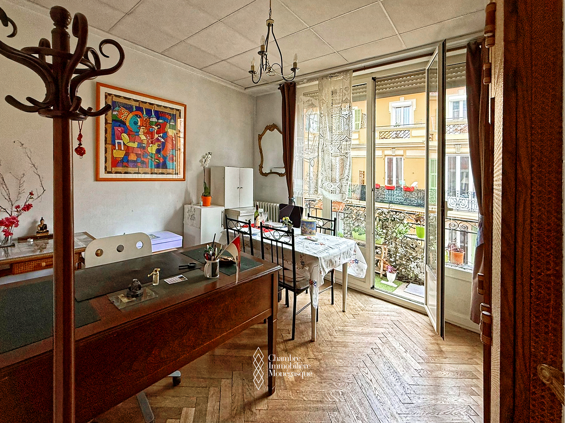 Appartement de trois pièces traversant à rénover, situé dans le quartier calme de Jardin Exotique, à proximité de toutes les commodités et à quelques minutes du centre-ville.