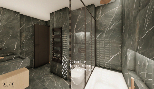 L'appartement se compose d’une entrée, d’un spacieux séjour avec salle à manger et cuisine américaine entièrement équipée, de deux chambres en suite disposant chacune de leur propre salle de bain (douche et baignoire), ainsi que de deux toilettes indépendants. Une buanderie, un dressing walk-in et plusieurs rangements intégrés viennent compléter l’agencement optimisé de ce bien traversant.