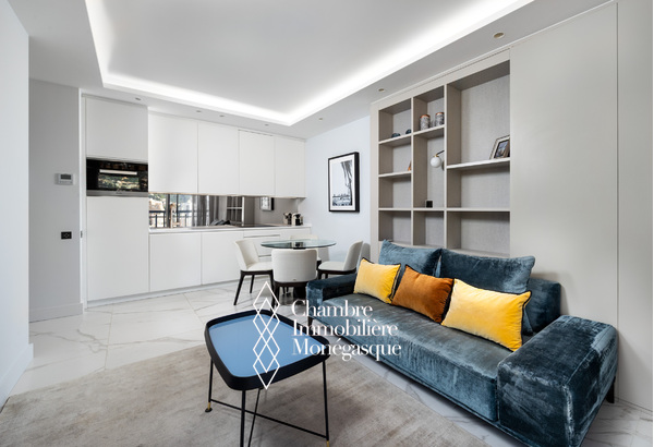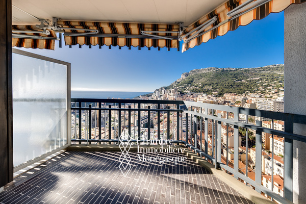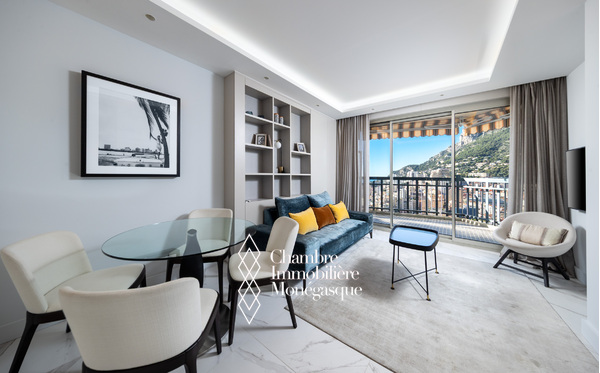 Perché au 27ème étage du emblématique immeuble Millefiori, cet appartement d’une chambre à coucher rénové offre une vue panoramique sur Monaco s’étendant jusqu’à la mer.
