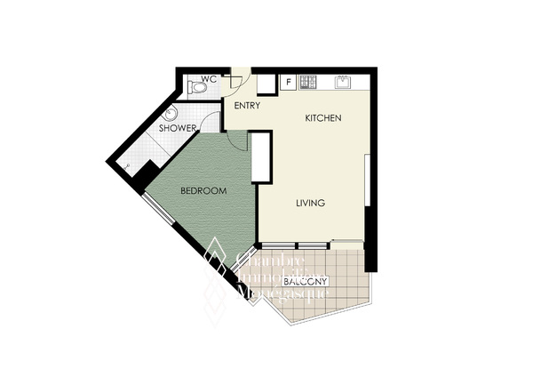 L’entrée accueillante s’ouvre sur un espace de vie lumineux et ouvert avec une cuisine américaine et un accès direct à une terrasse spacieuse. La chambre bien proportionnée bénéficie également d’un accès à la terrasse, tandis qu’une salle de douche moderne et un WC séparé complètent l’aménagement de l’appartement.