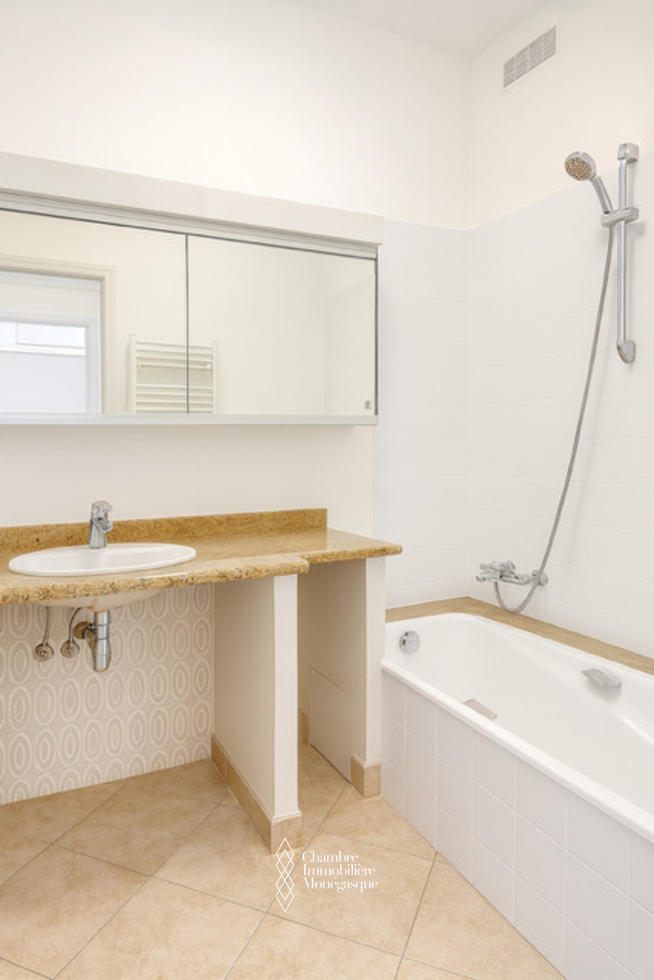 Dans une résidence avec concierge, cet appartement de deux/trois pièces possède une jolie vue mer. Il est idéalement situé proche de la place des Moulins, de deux supermarchés et de nombreux restaurants et commerces. Un accès aux plages du Larvotto est à proximité.