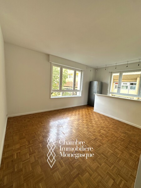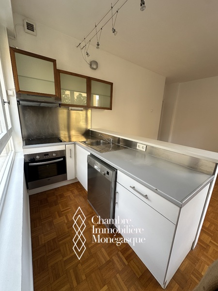 Dans un immeuble avec concierge 24H/24, joli deux pièces de 48 m², composé d'une entrée, séjour avec cuisine américaine, chambre avec placard et salle de bains