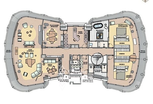 Ce magnifique duplex offre 480 m² de surface habitable, des balcons entourant l’appartement, avec une vue magnifique sur la place du Casino et la mer.