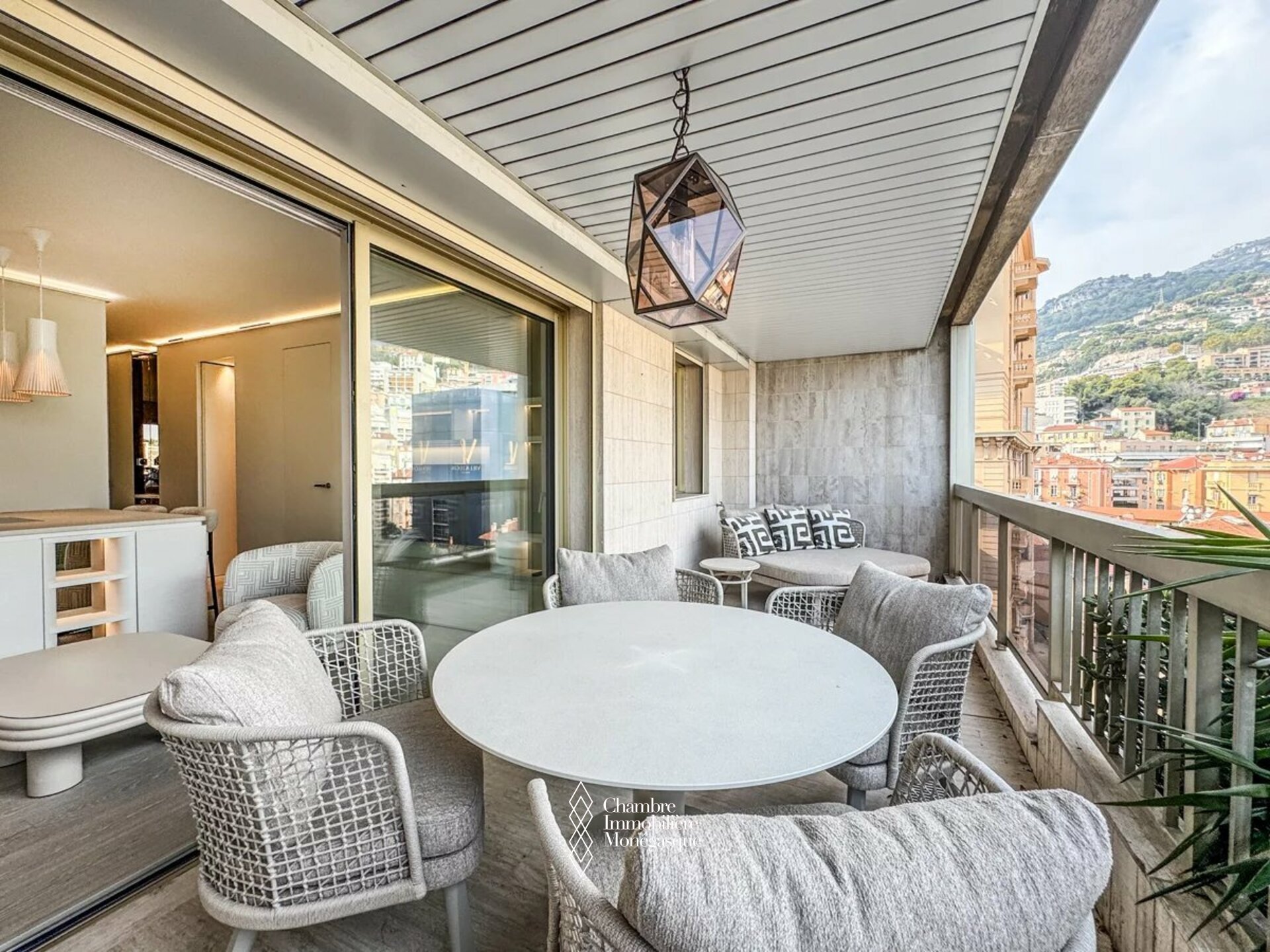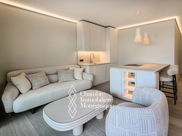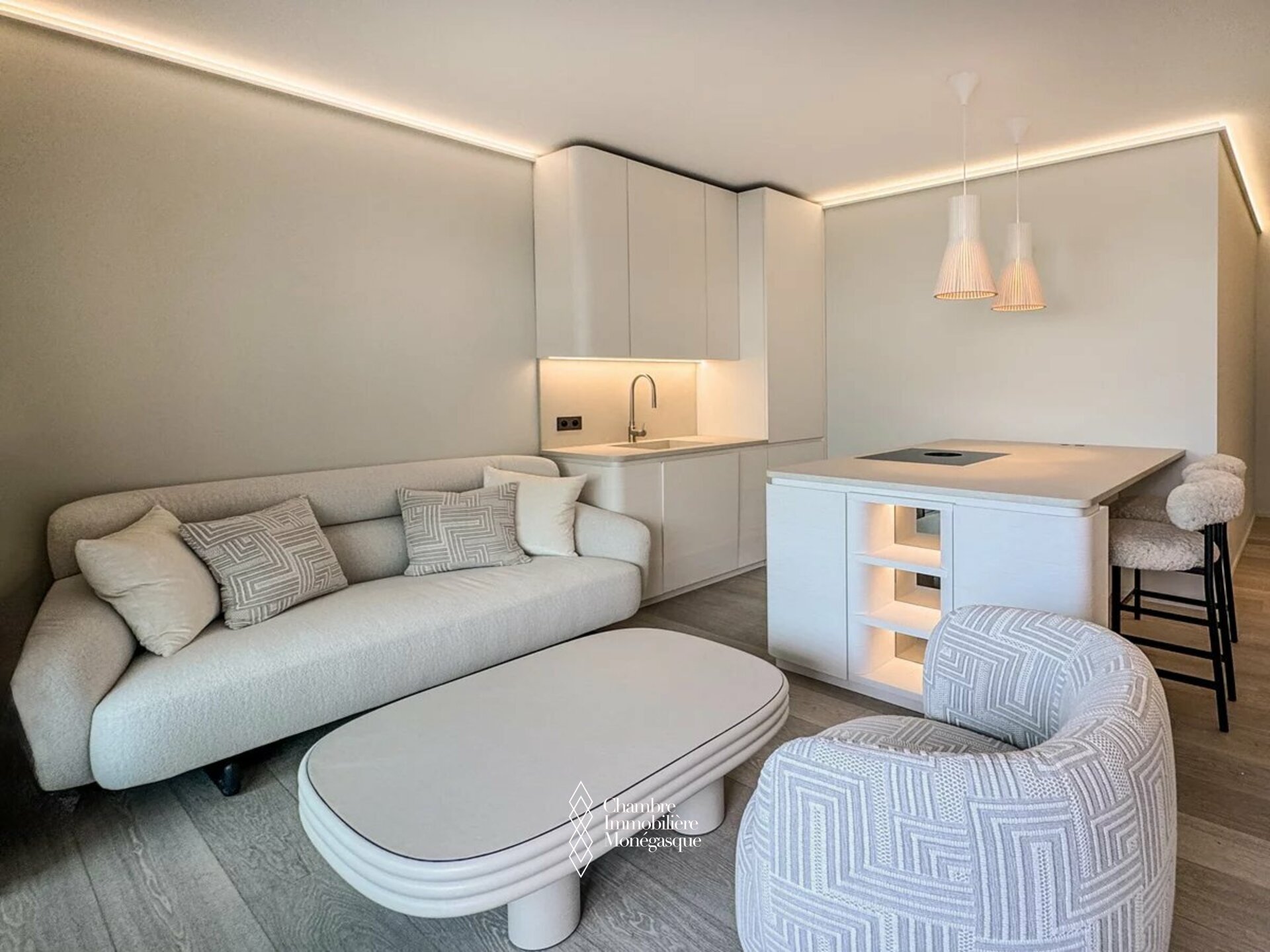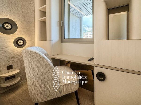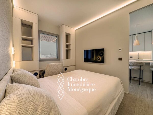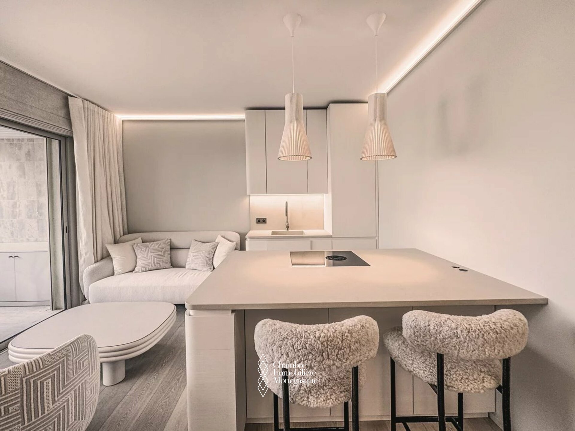 Cet appartement récemment rénové et entièrement meublé allie un design élégant, des équipements haut de gamme et un emplacement incomparable. Le choix des matériaux a été guidé par le souci du luxe, de la fonctionnalité et d’une élégance intemporelle – idéal pour ceux qui apprécient l’exception. Le séjour baigné de lumière, avec sa cuisine ouverte moderne et entièrement équipée, crée une atmosphère chaleureuse et s’ouvre directement sur la généreuse terrasse. Vous y trouverez les conditions idéales pour des moments de détente. Cette terrasse est aménagée d’une table à manger et d’un confortable daybed qui offrent une expérience unique de vie en plein air. Le salon douillet avec télévision invite également à la détente. La chambre élégante, avec de généreux espaces de rangement, garantit calme et intimité. La salle de douche en marbre raffinée séduit par ses rangements supplémentaires et souligne l’exigence du plus haut confort de vie. À seulement quelques minutes à pied se trouvent le légendaire Casino, l’Hôtel de Paris, ainsi que des boutiques exclusives et de charmants cafés. Cette offre exceptionnelle est complétée par un service de conciergerie disponible 24h/24 et 7j/7.