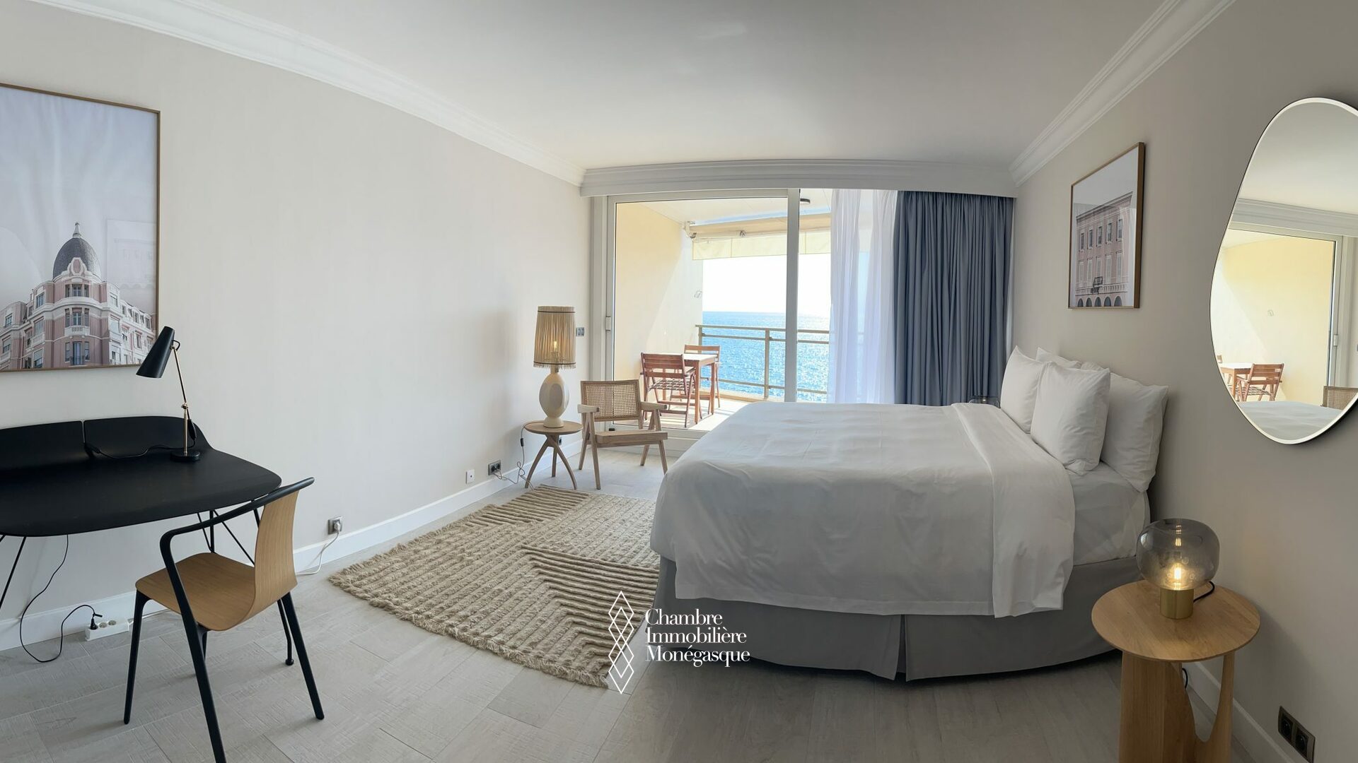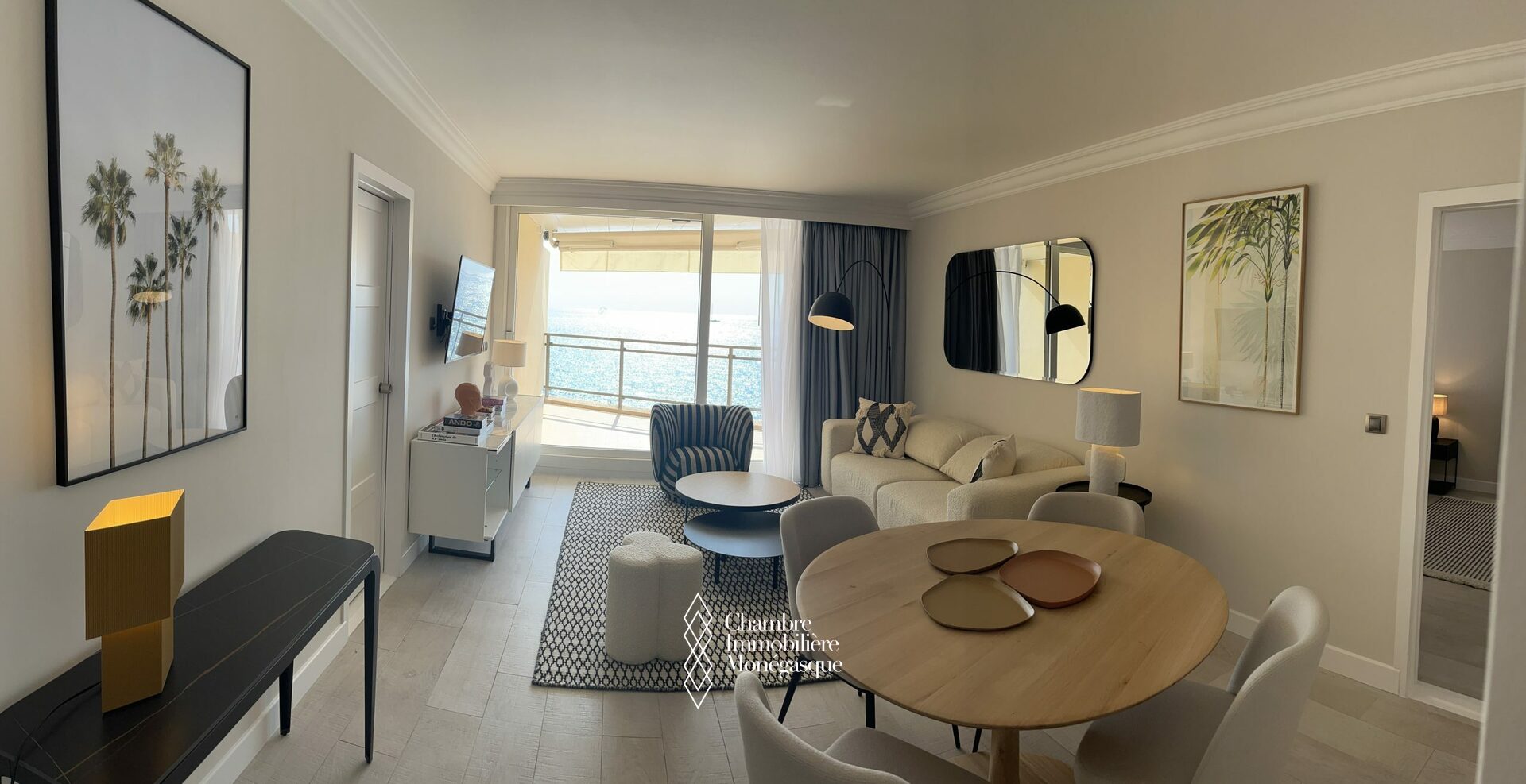 Face à la mer, ce 3-pièces meublé et rénové de standing se compose de la manière suivante : hall d’entrée manant au salon, cuisine entièrement équipée, deux chambres avec chacune sa salle de bain, dressing attenant. Trois confortables terrasses permettent de profiter d’une vue directe sur la mer Méditerranée.