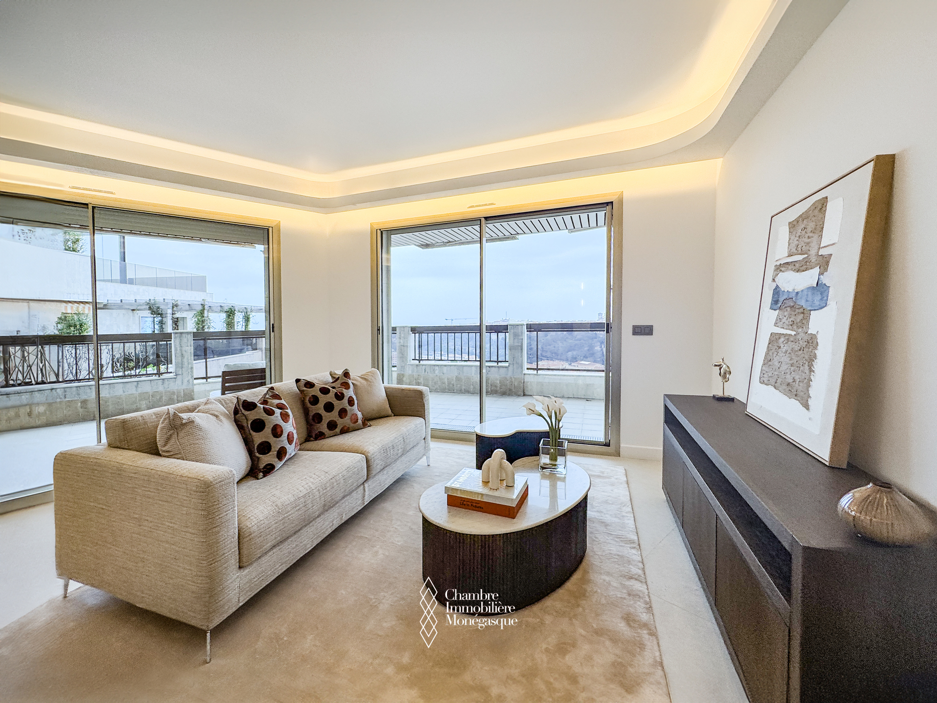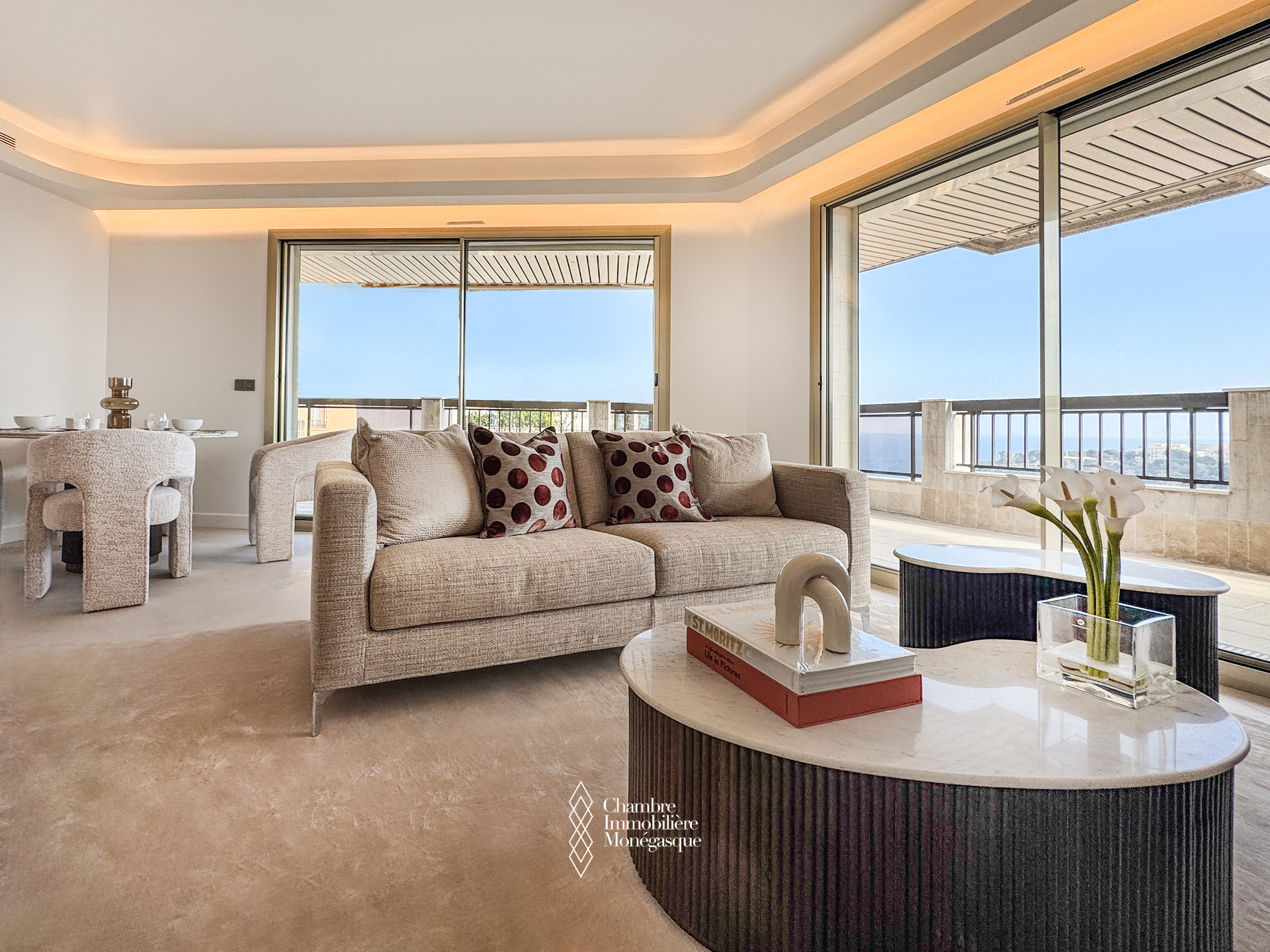 Bienvenue dans une véritable oasis de luxe - un magnifique appartement dans la résidence de luxe exclusive Beverly Palace. Cette propriété exquise a été récemment entièrement rénovée avec le plus grand soin et l'amour du détail et vous promet une expérience de vie de première classe. En entrant dans le salon spacieux et lumineux, vous ressentez immédiatement l'harmonie et le luxe qui imprègnent cet espace. De grandes fenêtres ouvrent sur une vaste terrasse à couper le souffle, d'où vous pourrez admirer le panorama imprenable sur le port et les majestueux rochers - une vue qui transformera votre quotidien en un véritable rêve. Les deux élégantes chambres à coucher offrent non seulement du confort, mais aussi une retraite de calme et de repos. Toutes deux sont dotées de leur propre salle de bain luxueusement équipée. Vous pourrez vous y détendre après une longue journée et profiter d'un moment à deux. La cuisine séparée, équipée d'appareils de première classe et des matériaux les plus nobles, est une invitation à cuisiner et à profiter de la vie. Véritable chef-d'œuvre de design moderne, elle allie fonctionnalité et style. Cette rare opportunité de vivre dans l'une des résidences les plus exclusives de la ville ne laisse aucune place au compromis. Ici, le luxe et le confort se fondent en une qualité de vie incomparable. Offrez-vous ce style de vie exceptionnel - dans une propriété qui vous touchera profondément, tant sur le plan esthétique qu'émotionnel. Faites l'expérience de ce sentiment unique d'être chez soi, qui offre à la fois une élégance pure et un confort douillet. Ne laissez pas passer cette chance unique - votre nouvelle maison vous attend !