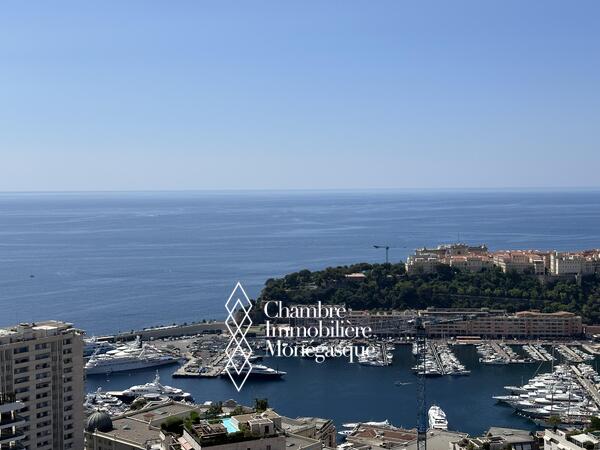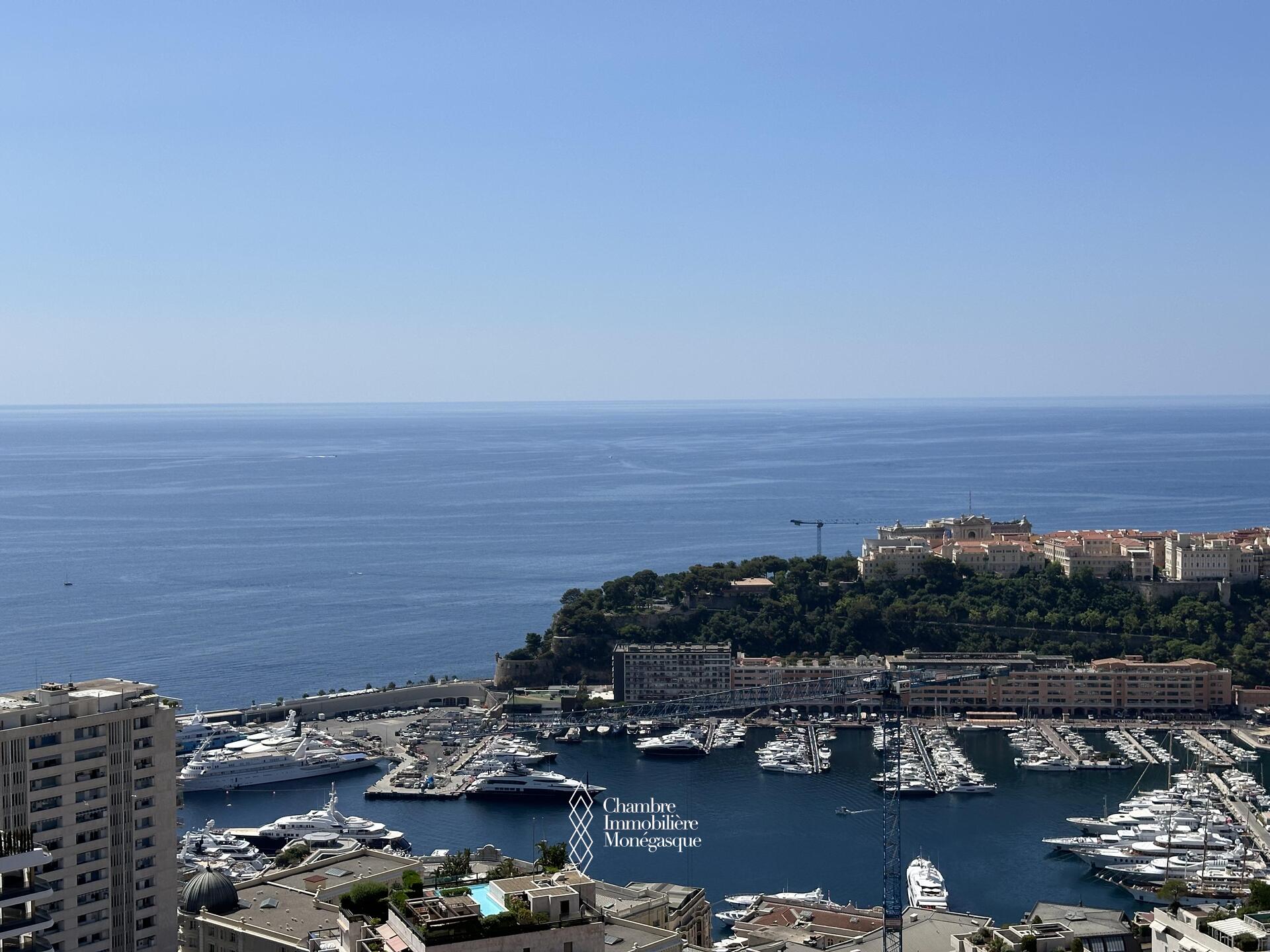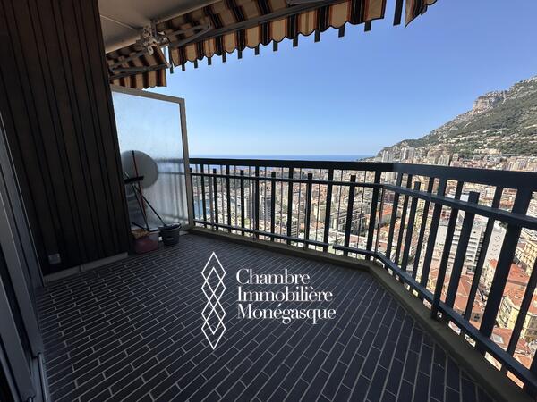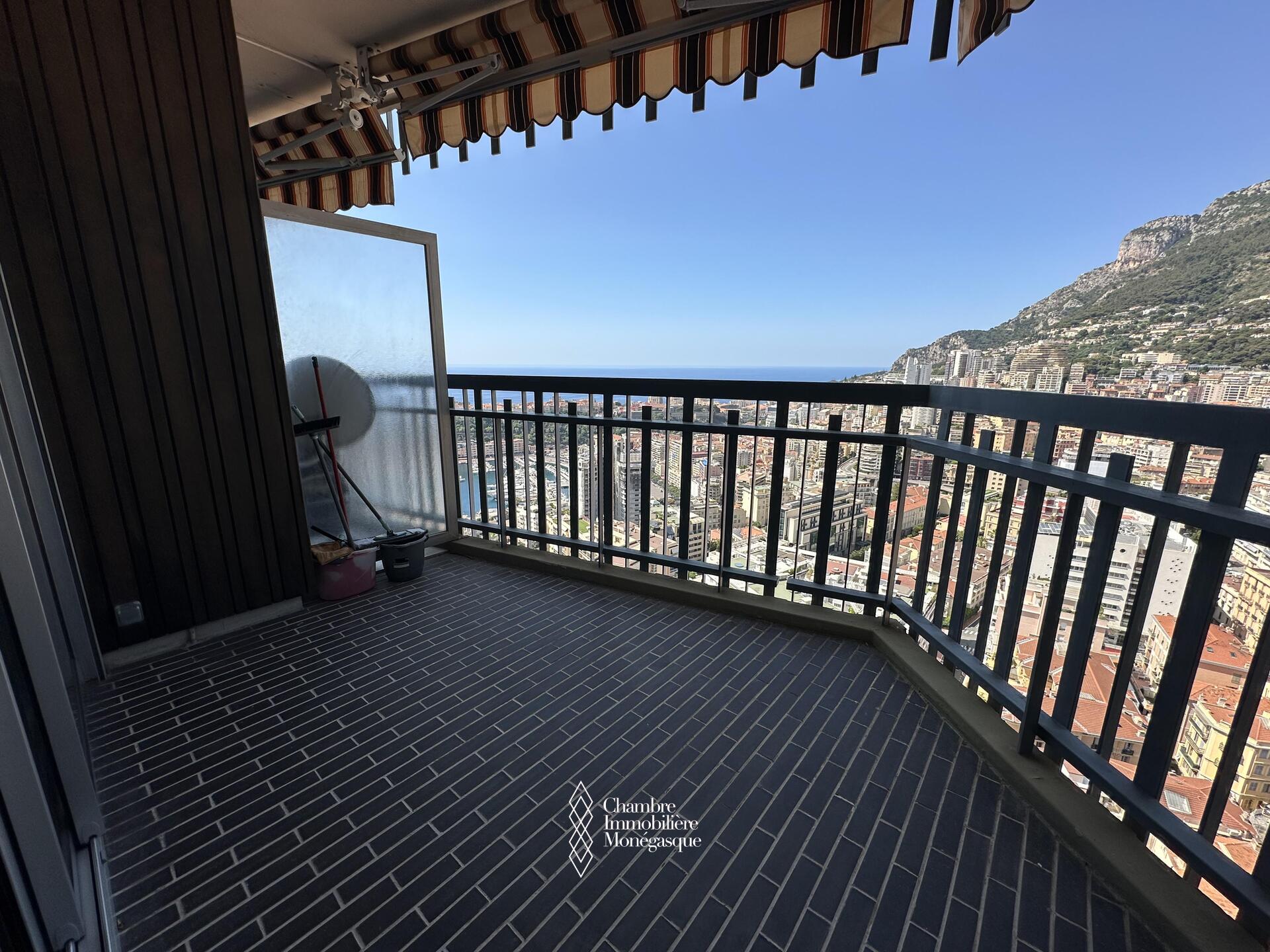 L'appartement est composé d'un séjour avec cuisine américaine équipée, une belle terrasse offrant une vue panoramique sur Monaco et sur la mer, une chambre, une salle de douche.