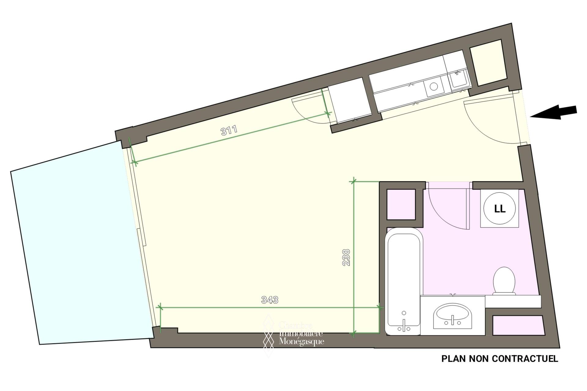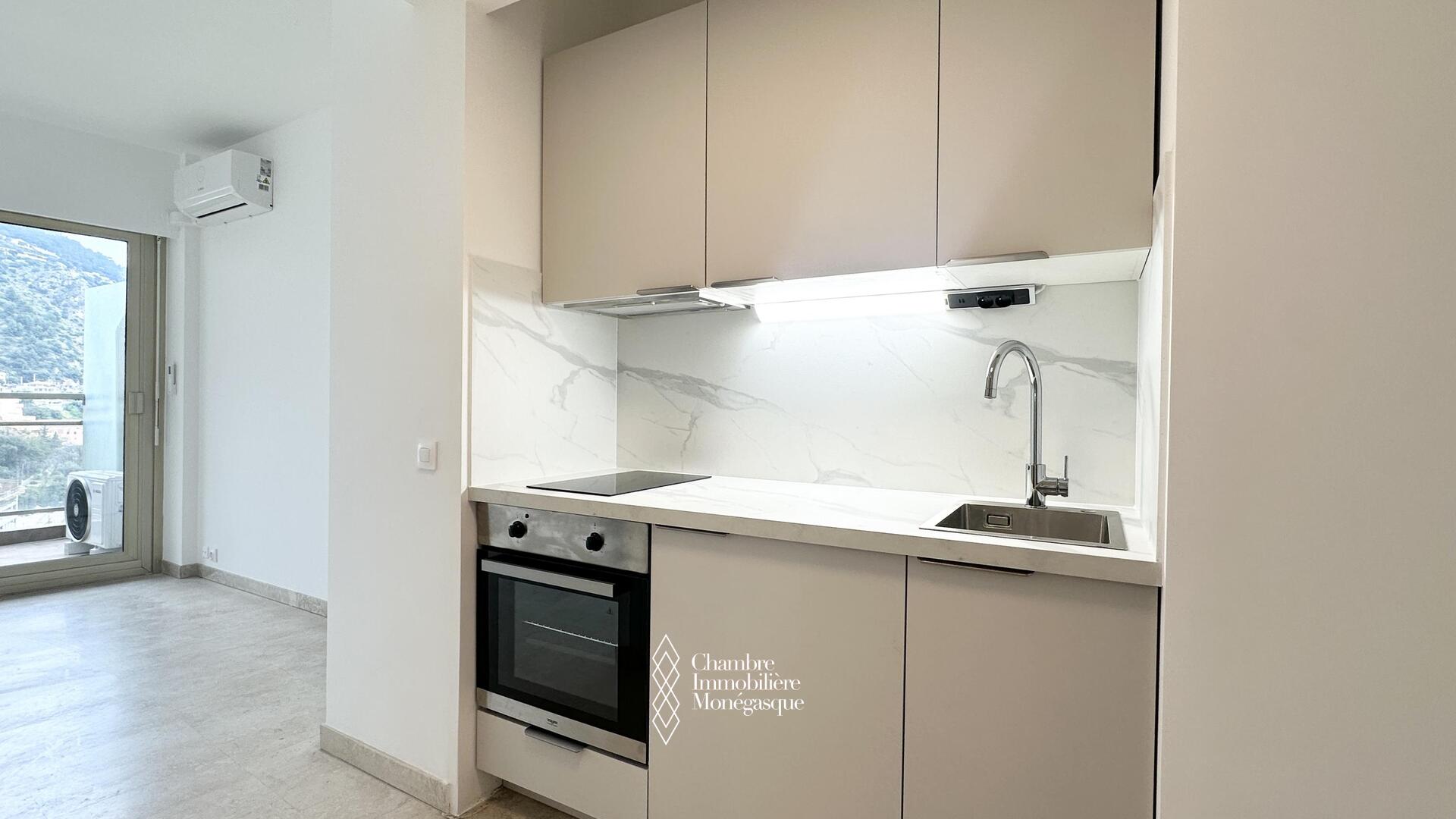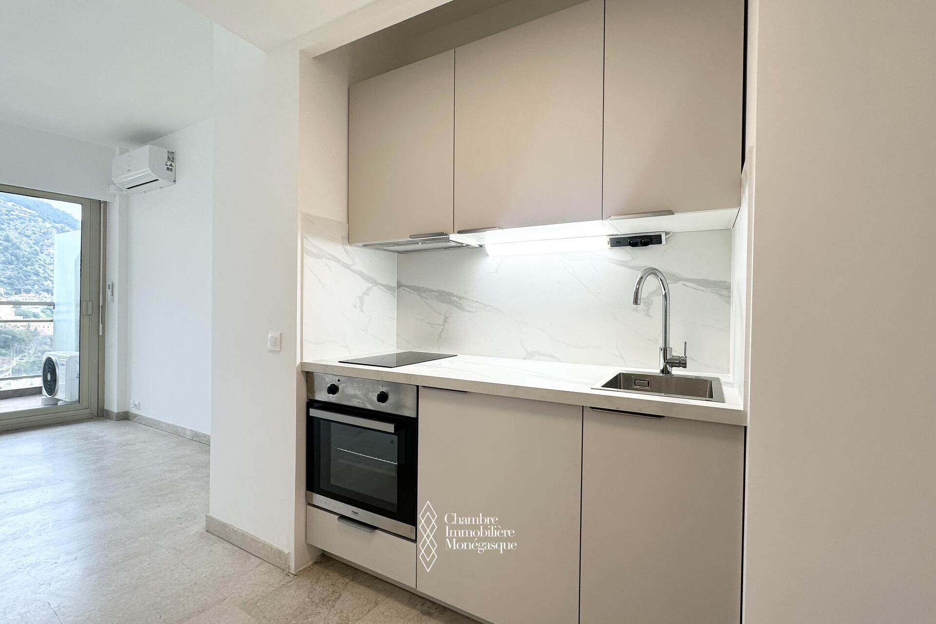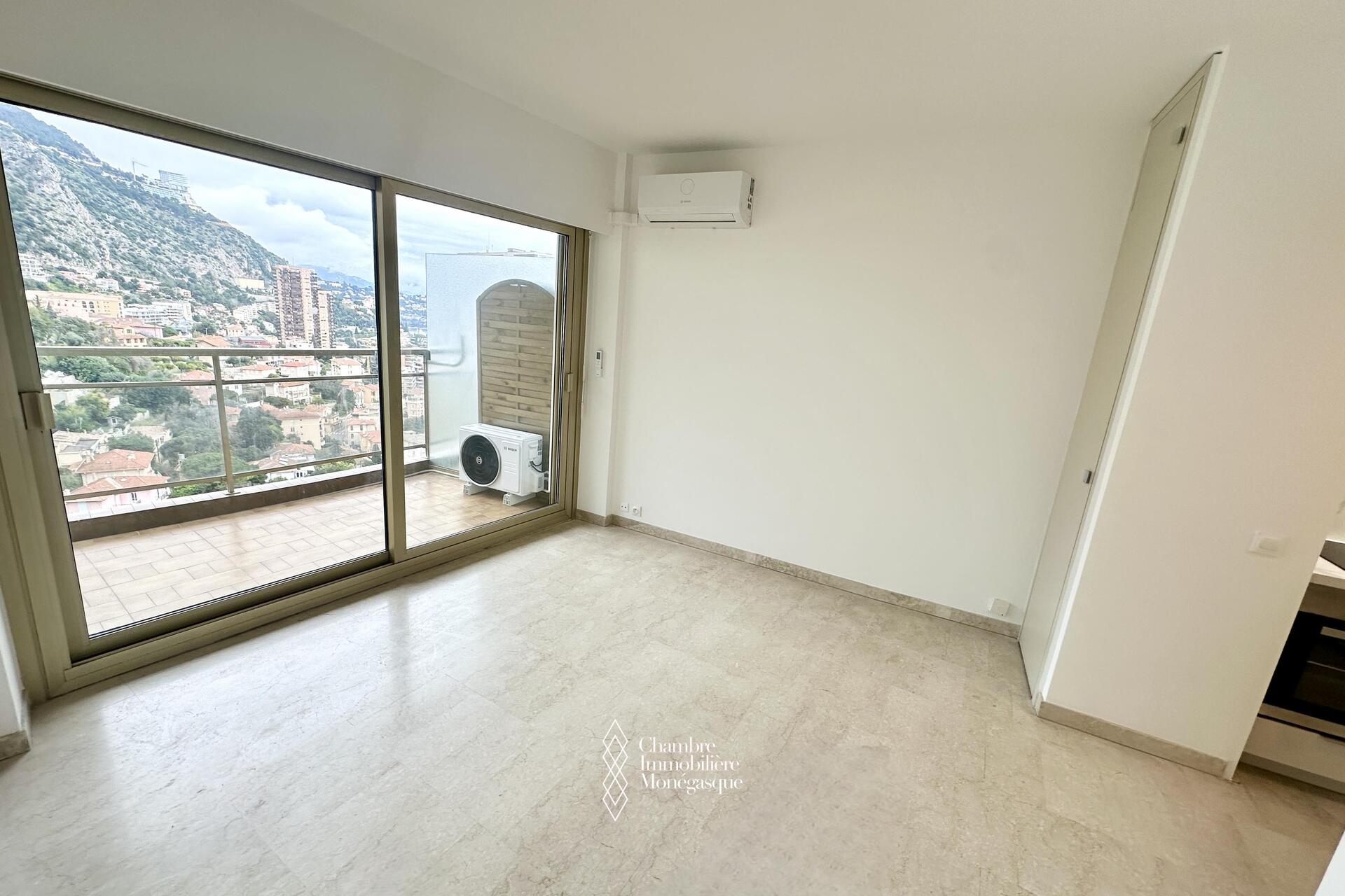 Proche de toutes commodités et non loin des plages du Larvotto (par ascenseur public), ce studio d'une surface de 30 m2 dont 5 m2 de terrasse est parfait pour un pied à terre. Cuisine neuve et climatisation.