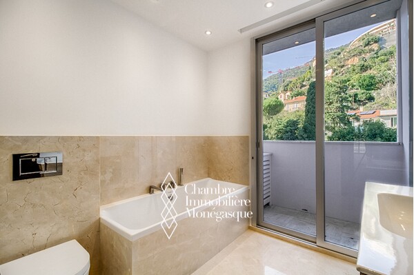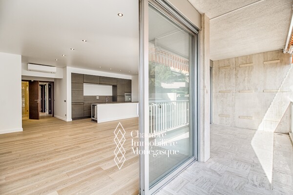 Beau 4 pièces entièrement refait à neuf avec des matériaux de qualité. Belle terrasse avec vue sur la Principauté et la mer. Loué à € 12.900/mois jusqu'au 30/06/2025. Possibilité parking en sus.