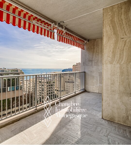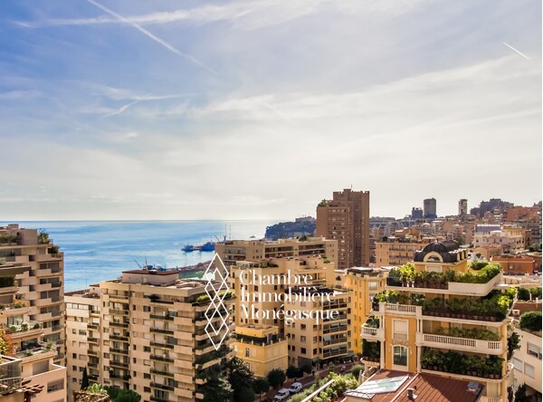 Belle terrasse avec vue sur la Principauté et la mer. Loué à € 12.900/mois jusqu'au 30/06/2025. Possibilité parking en sus.
